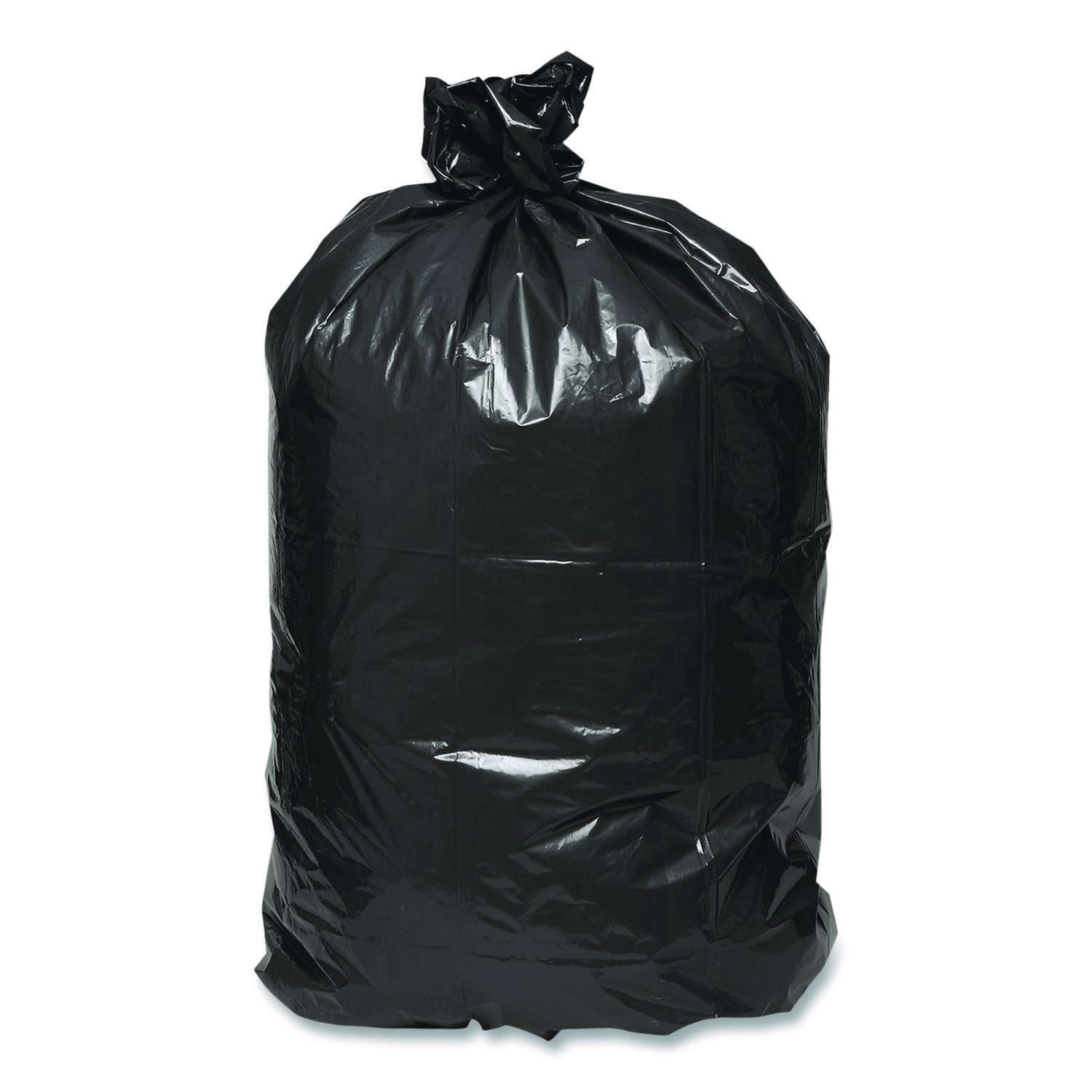 Extra heavy duty recycled liners are suitable for all trash applications. Ideal for state and local municipalities that mandate purchasing of recycled content products. Star bottom seal construction distributes weight more evenly and resists leaks. Coreless rolls for convenient dispensing. Black color hides unsightly trash. Commercial/Consumer Use: Commercial Use; Maximum Volume Range: 51 to 60 gal; Minimum Volume Capacity: 55 gal; Maximum Volume Capacity: 60 gal.