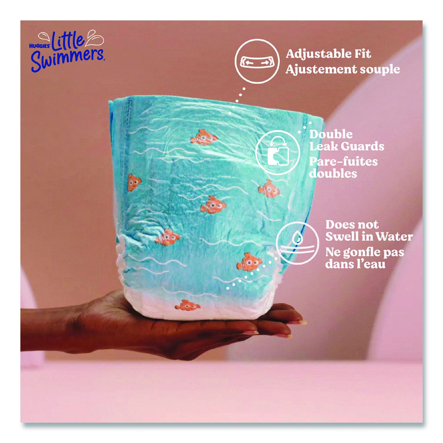 Enjoy worry-free water fun and let your baby make a splash in Huggies Little Swimmers swim diapers! Made with unique materials that won’t swell in water like regular baby diapers, Little Swimmers give your baby a comfortable fit when wet or dry. For secure protection in the water, Little Swimmers are designed with Double Leak Guards that fit snugly around your baby’s legs to help contain messes. Made to fit like swimwear, these Huggies diapers for swimming feature easy open, refastenable sides for an adjustable fit and quick diaper changes, whether you’re at the pool or on the beach. Plus, the soft, stretchy waistband make these swim pants comfortable for your baby. These swimming diapers are also made with no harsh ingredients and are free of fragrances, lotions, elemental chlorine bleaching and natural rubber latex. Features two Disney·Pixar Finding Nemo designs your child will love. Perfect for the pool, beach, splash park and more! Diaper Style: Swim Diapers; Diaper Size: 3; Baby Weight Range Max [Max]: 26 lbs; Baby Weight Range Min [Min]: 16 lbs.