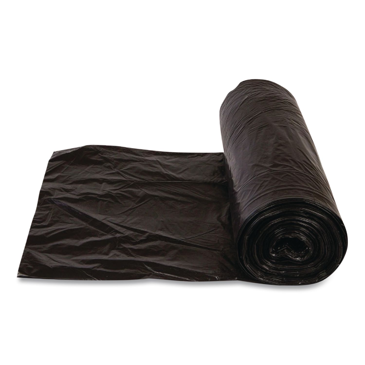 Low-Density Commercial Can Liners, 30 gal, 0.58 mil, 30″ x 36″, Black, Interleaved Roll, 25 Bags/Roll, 10 Rolls/Carton