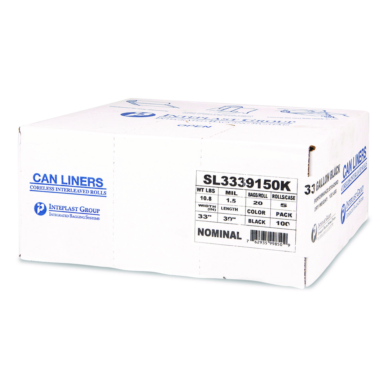 Low-Density Commercial Can Liners, 33 gal, 1.5 mil, 33″ x 39″, Black, Interleaved Roll, 20 Bags/Roll, 5 Rolls/Carton
