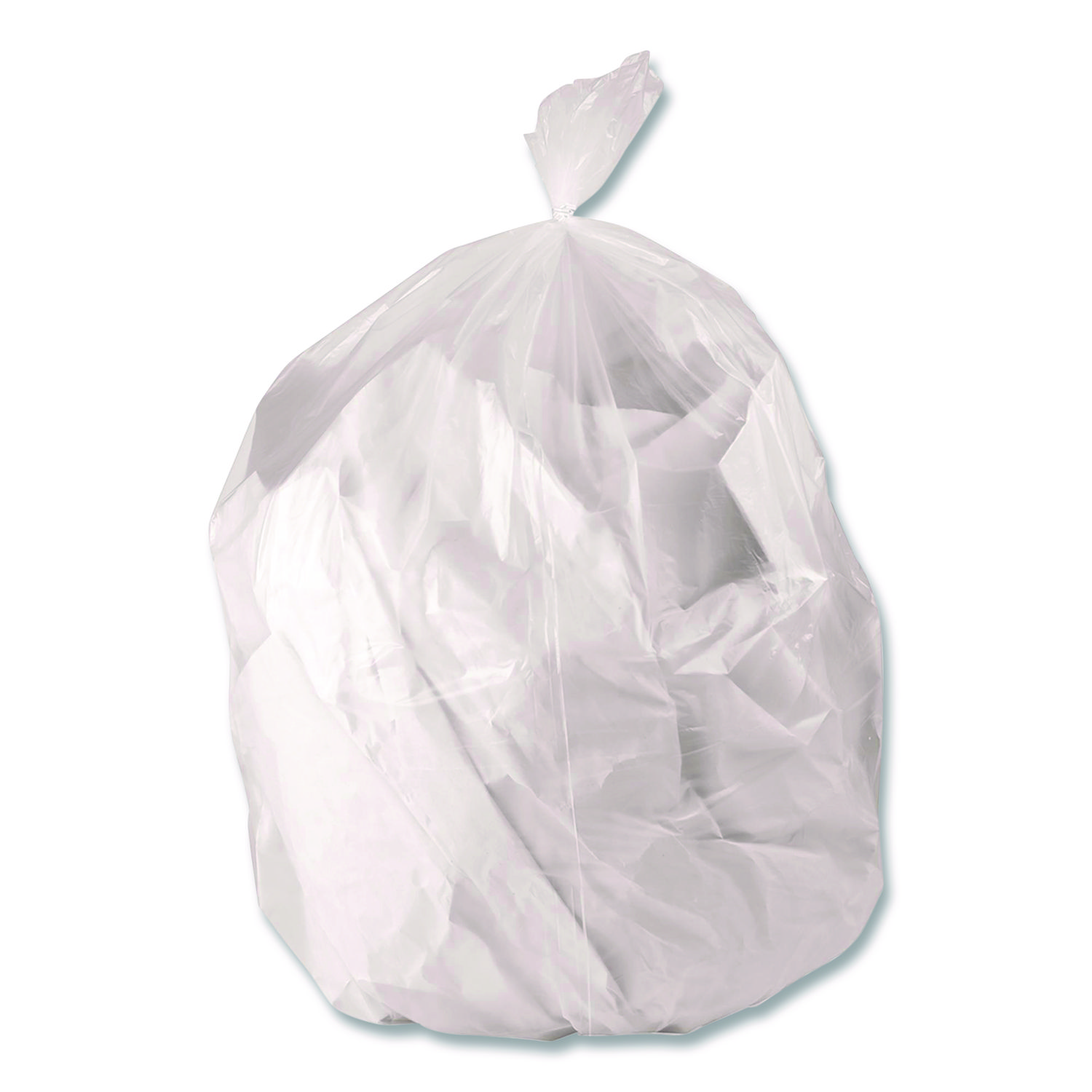 Low-density liners provide superior performance at an affordable price. Made from high-quality raw materials, mineral reinforced to enhance strength and puncture-resistance. Use with heavy loads, including sharp or abrasive materials. The sturdy, star-seal bottom helps prevent leaks and provides even weight distribution for easy removal from receptacle. Coreless perforated rolls are easy to use and great for dispensing on the go. A quality can liner that provides trusted waste collection for heavy-duty applications. Commercial/Consumer Use: Commercial Use; Maximum Volume Range: 41 to 50 gal; Minimum Volume Capacity: 44 gal; Maximum Volume Capacity: 44 gal.