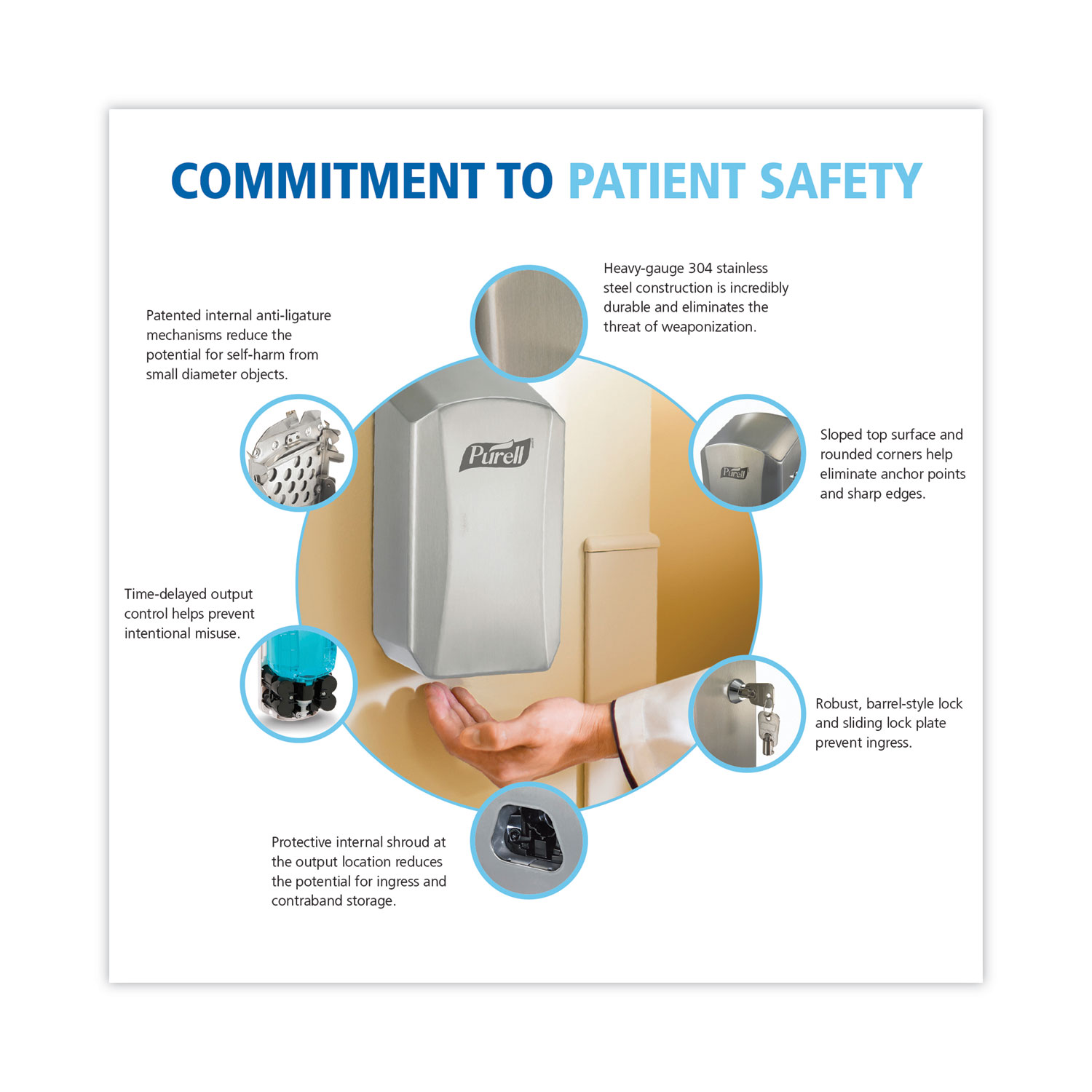 GOJO Industries introduces the first touch-free dispenser for the behavioral health market. The revolutionary stainless steel PURELL LTX Behavioral Health Dispensing System features a patent pending anti-ligature design. This dispenser technology helps to create a safer environment for patients and provides behavioral health patients and staff with access to proper hand hygiene. Mounting Details: Wall; Holds: 1,200 mL; Material(s): Stainless Steel; Color(s): Silver.