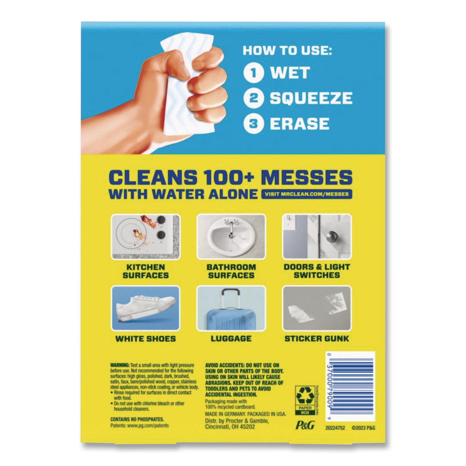 Disposable, soft pads erase set-in dirt and grime quickly and easily. They remove scuff marks, dirt and tough crayon marks from floors, walls and doors. Safe to use; no gloves or chemicals necessary. Sponge Type: Scrub Sponge; Material(s): Foam; Shape: Rectangular; Width: 2.3″.
