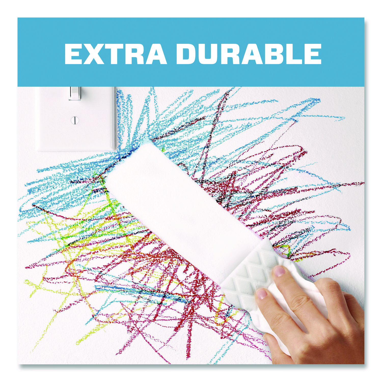 Mr. Clean® Magic Eraser Extra Durable is a powerful all-purpose cleaner that removes scuff marks, dirt and grime from a variety of surfaces around your business. This Mr. Clean® multi-surface cleaner uses water-activated cleaning pads to reach into surface grooves and lift away the toughest soils with water alone. Sponge Type: Scrub Sponge; Material(s): Foam; Shape: Wavy Rectangle; Width: 4.6″.