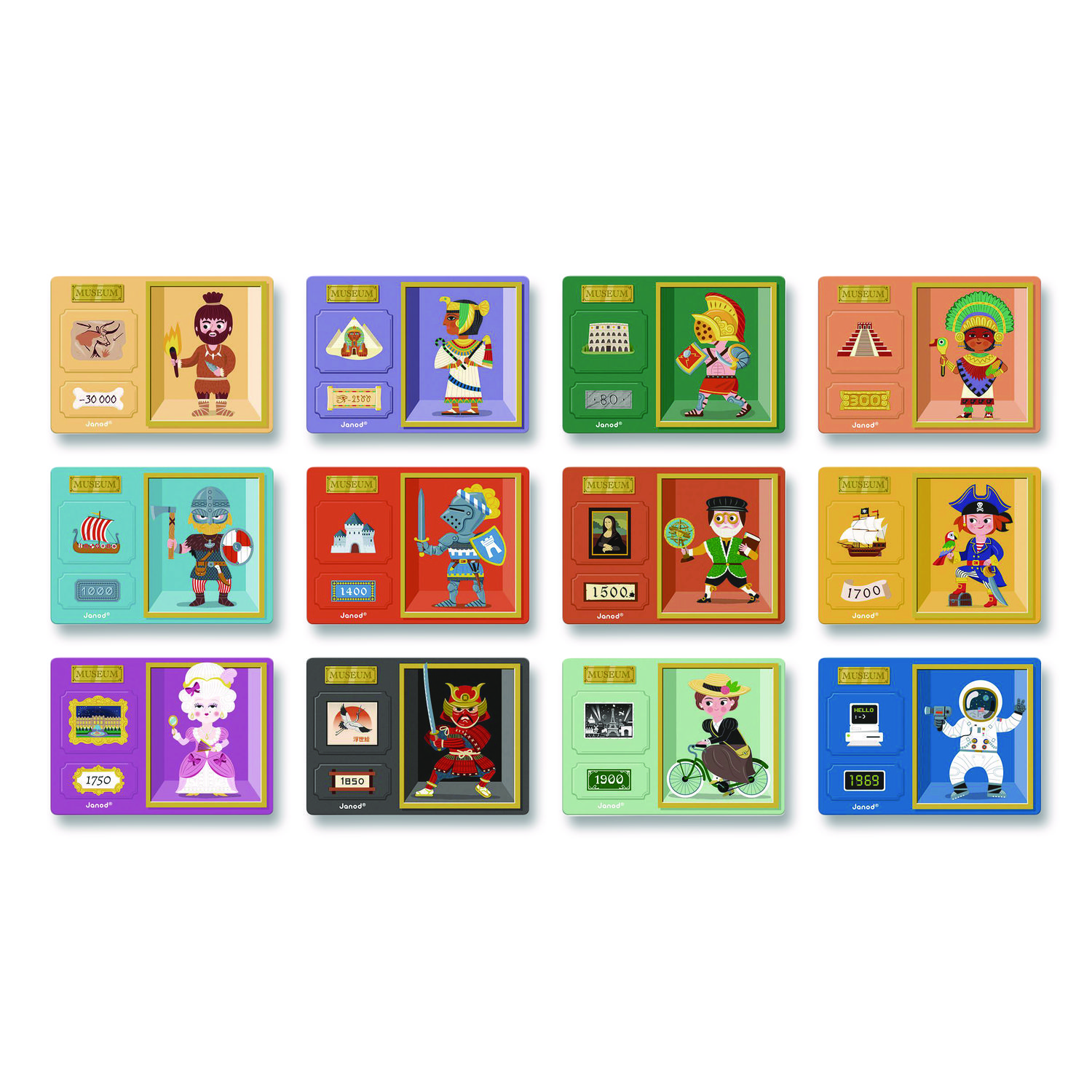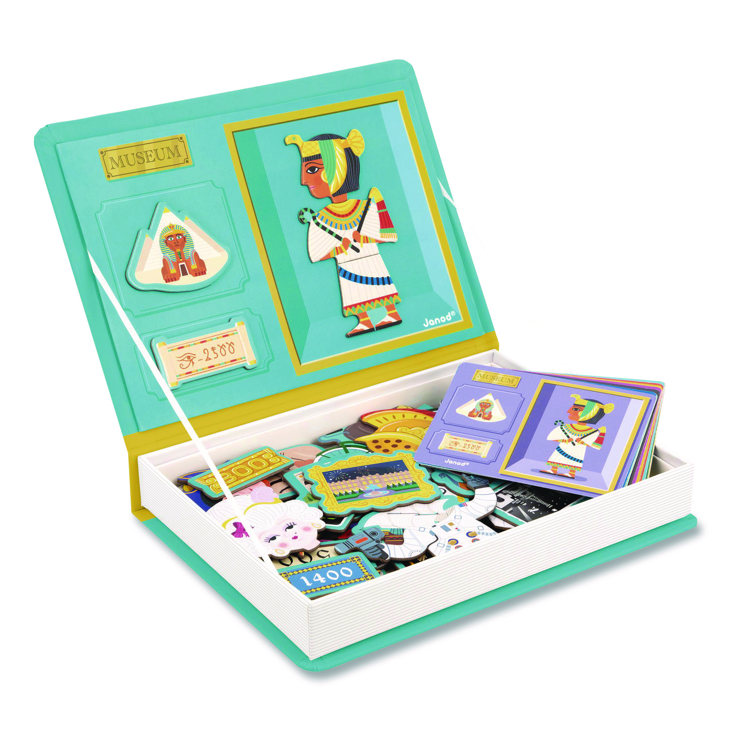 Cardboard magnetic educational game based on a theme; composed of many magnets and cards. Once the book is opened, the object of the game is to use the magnetic background for the placement of magnets to recreate the scene indicated on the card. Children can also have fun mixing the various interchangeable pieces to create their own stories. Educational learning aid, enhancing cognition and dexterity. World History. Subject Area: History; Specific Subject: World History; Age Recommendation: Ages 3 to 8; Grades: Grades Pre-K to 3.