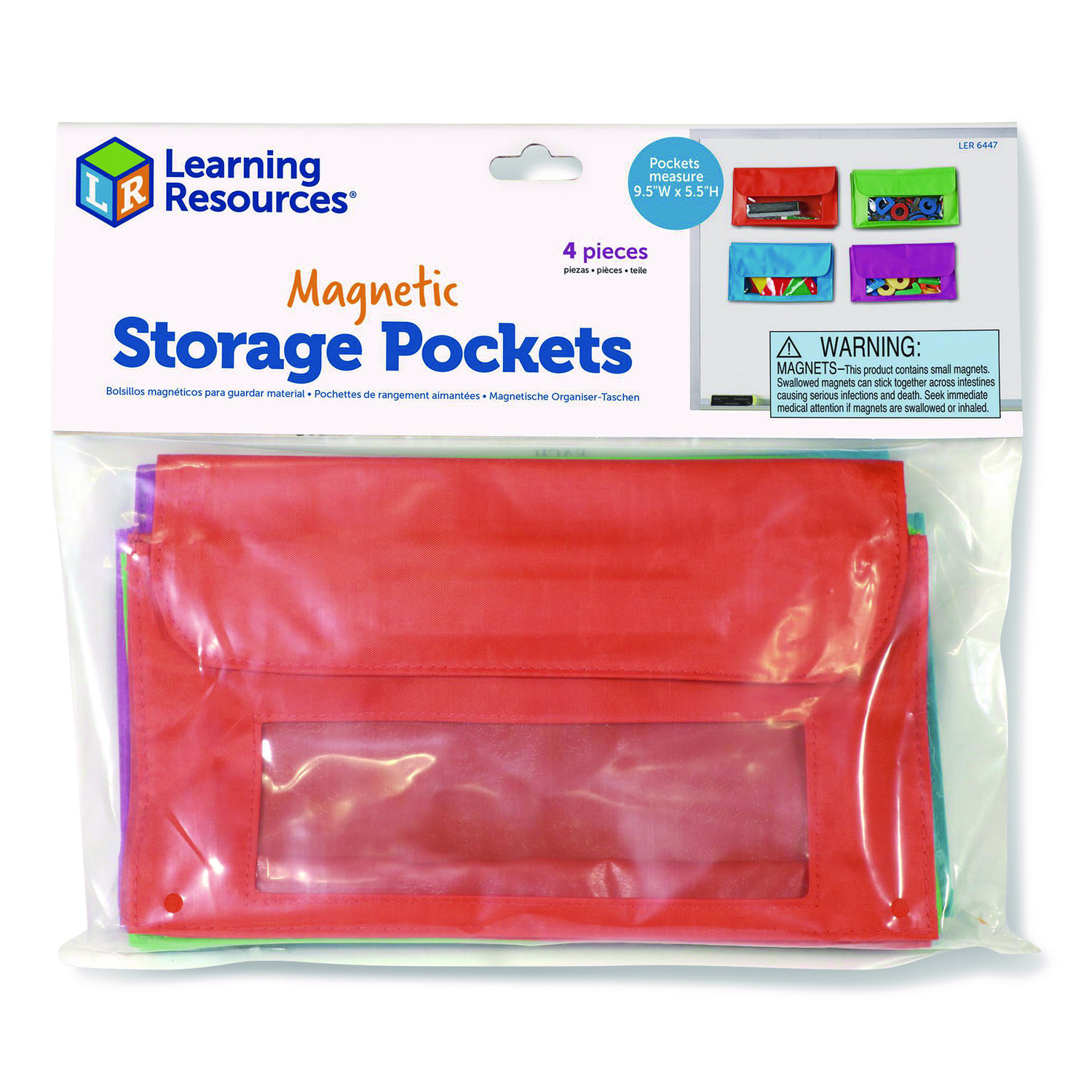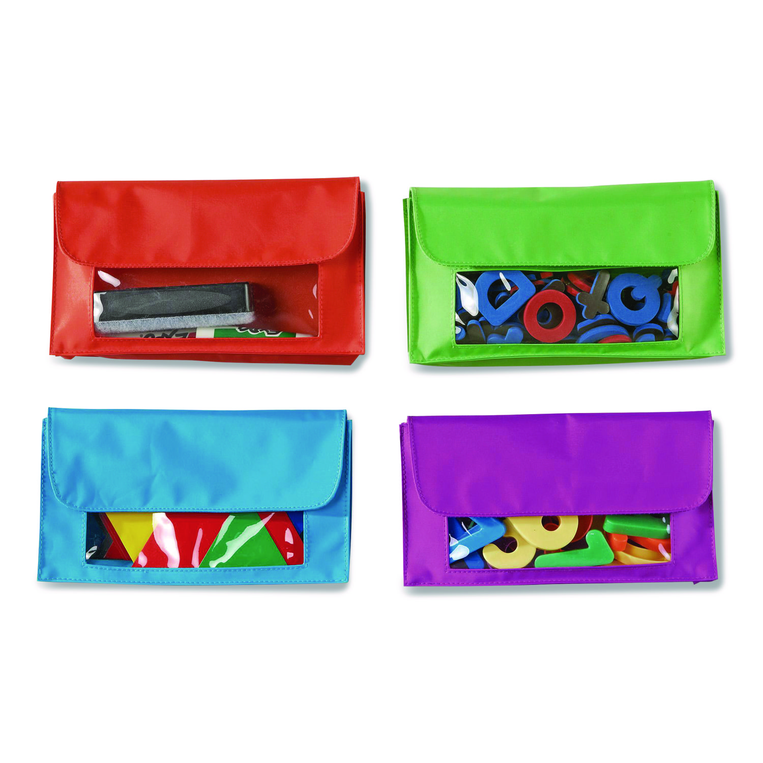 Magnetic storage pockets let you store your whiteboard magnets within easy reach. Sturdy magnets can be used around the room for better organization. Pockets are individually colored for quick recognition when organizing items. Great for classroom organization. Each pocket holds about 0.75 lb. Stand-Alone Product: Yes; Optional Accessory: No; Integral Component: No; Color(s): Assorted.