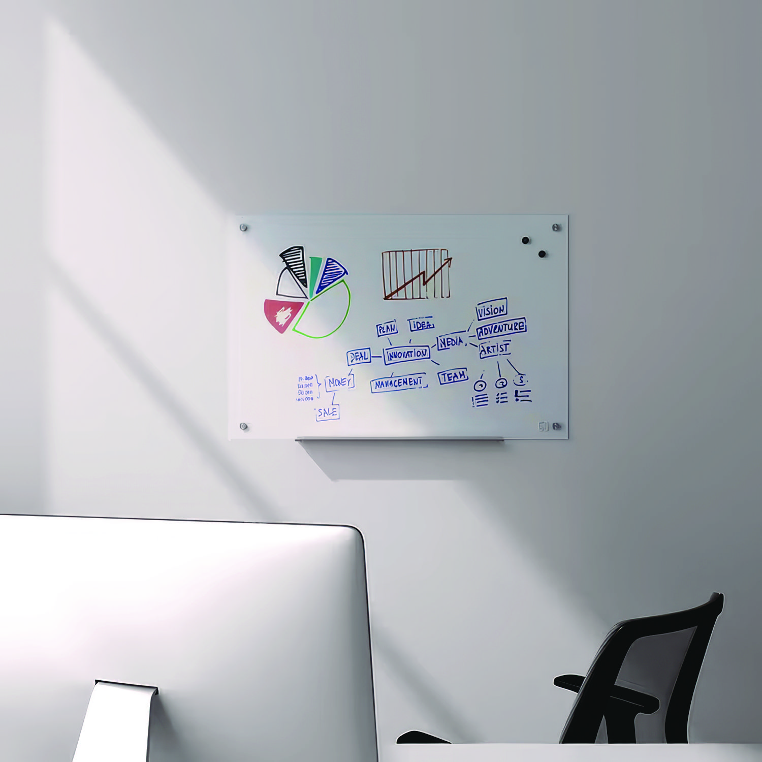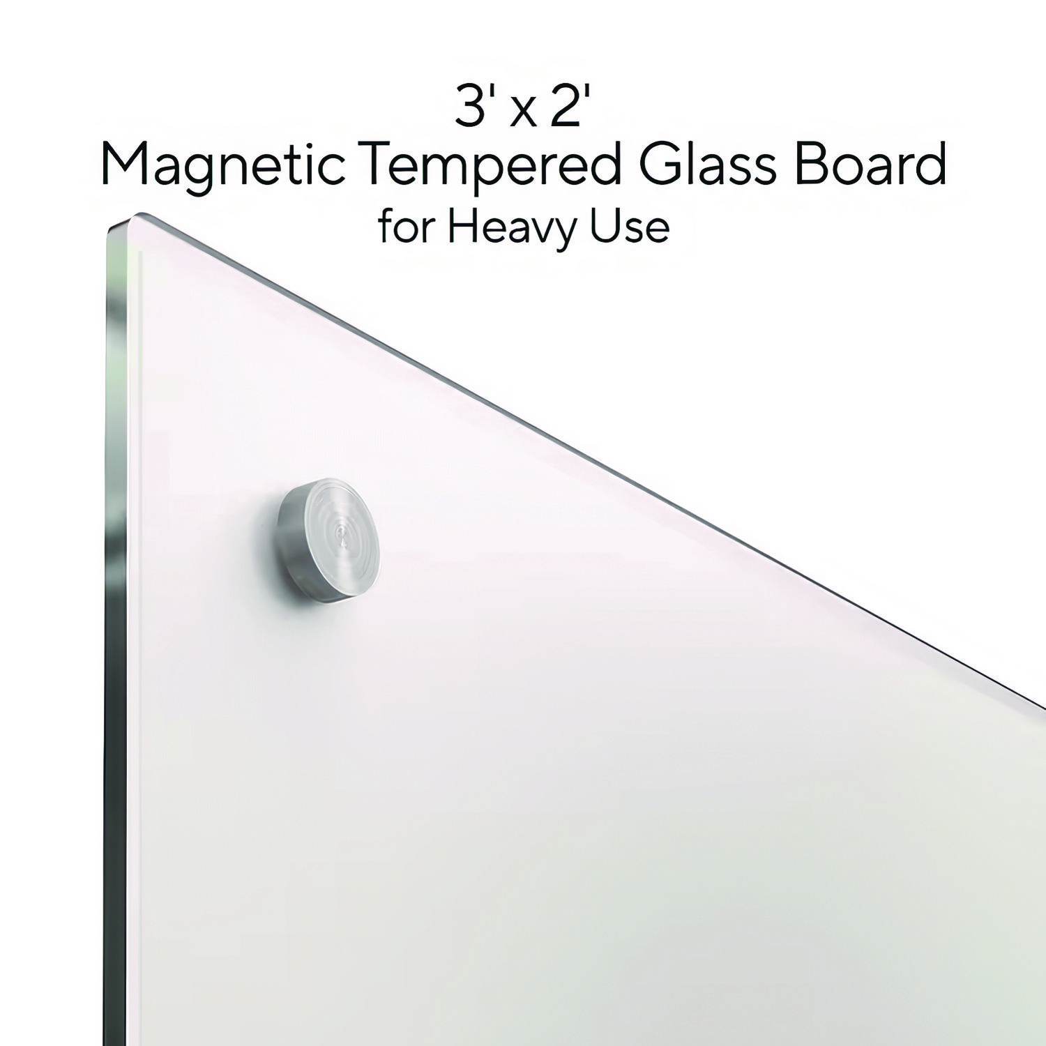 Magnetic Tempered Glass Dry Erase Board, 36″ x 24″, White Surface