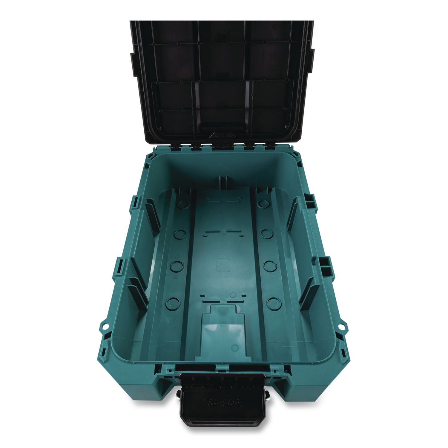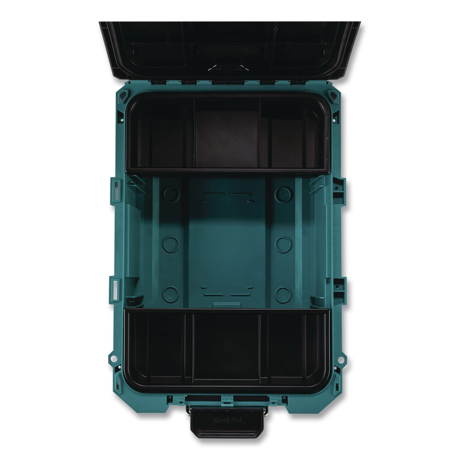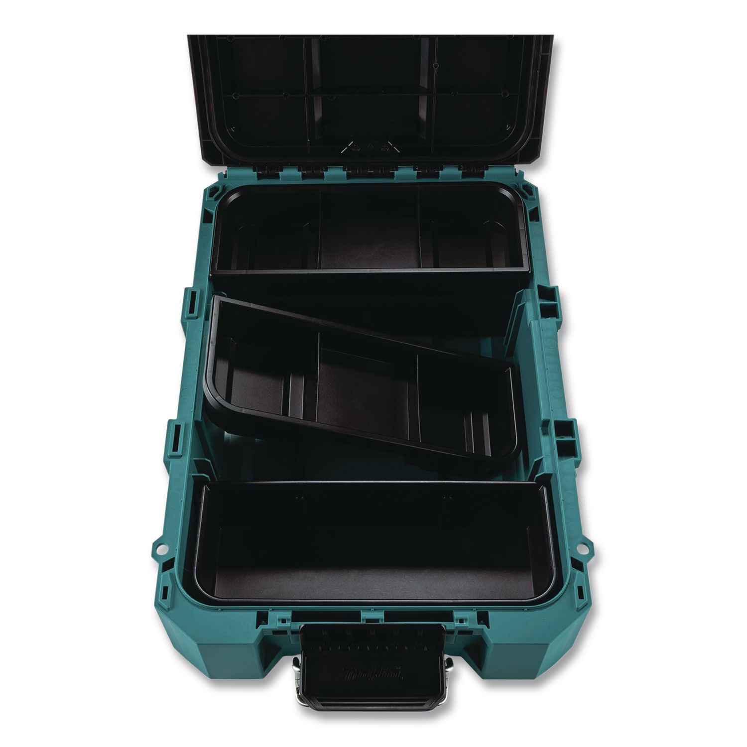 Makita MAKTRAK™ is the next generation in modular storage. The MAKTRAK™ Medium Tool Box is a modular storage solution to transport, access, store and organize job site equipment and tools. It has a holding capacity of 1,123 cu in and up to 75 lbs. It’s equipped with large glove-friendly latches for easy access to tools, accessories, batteries, chargers and small parts. Constructed of impact-resistant copolymer to withstand the toughest jobsite conditions. The deep trays hold a variety of hand tools, and the shallow trays have multiple dividers for small parts. Built on four core functions: Transportation, Access, Storage and Organization. Each function is backed by unique design and engineering that makes MAKTRAK™ the most advanced system on the market. Organizer Type: Box; Material(s): Plastic; Color(s): Teal/Black; Depth: 15.22″.