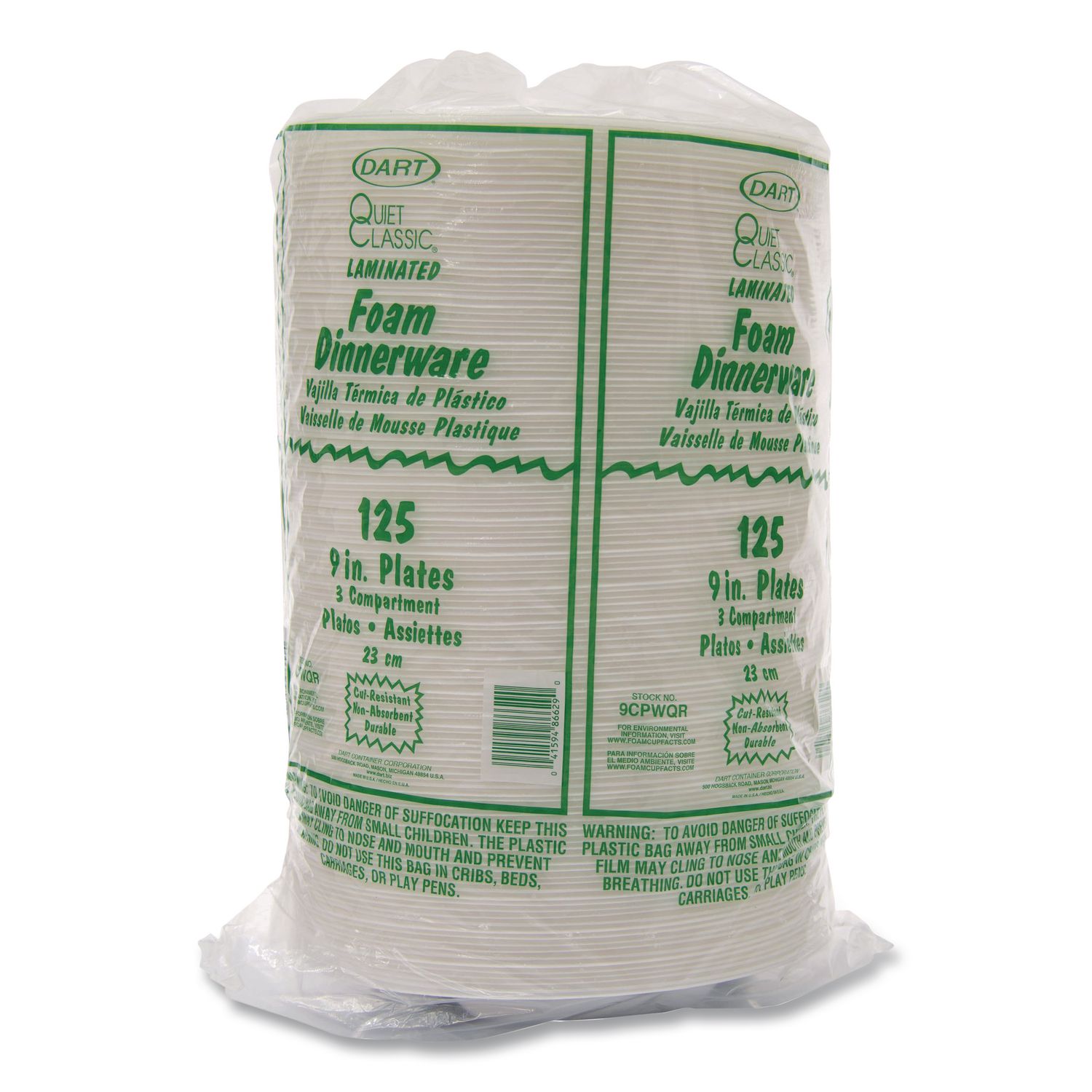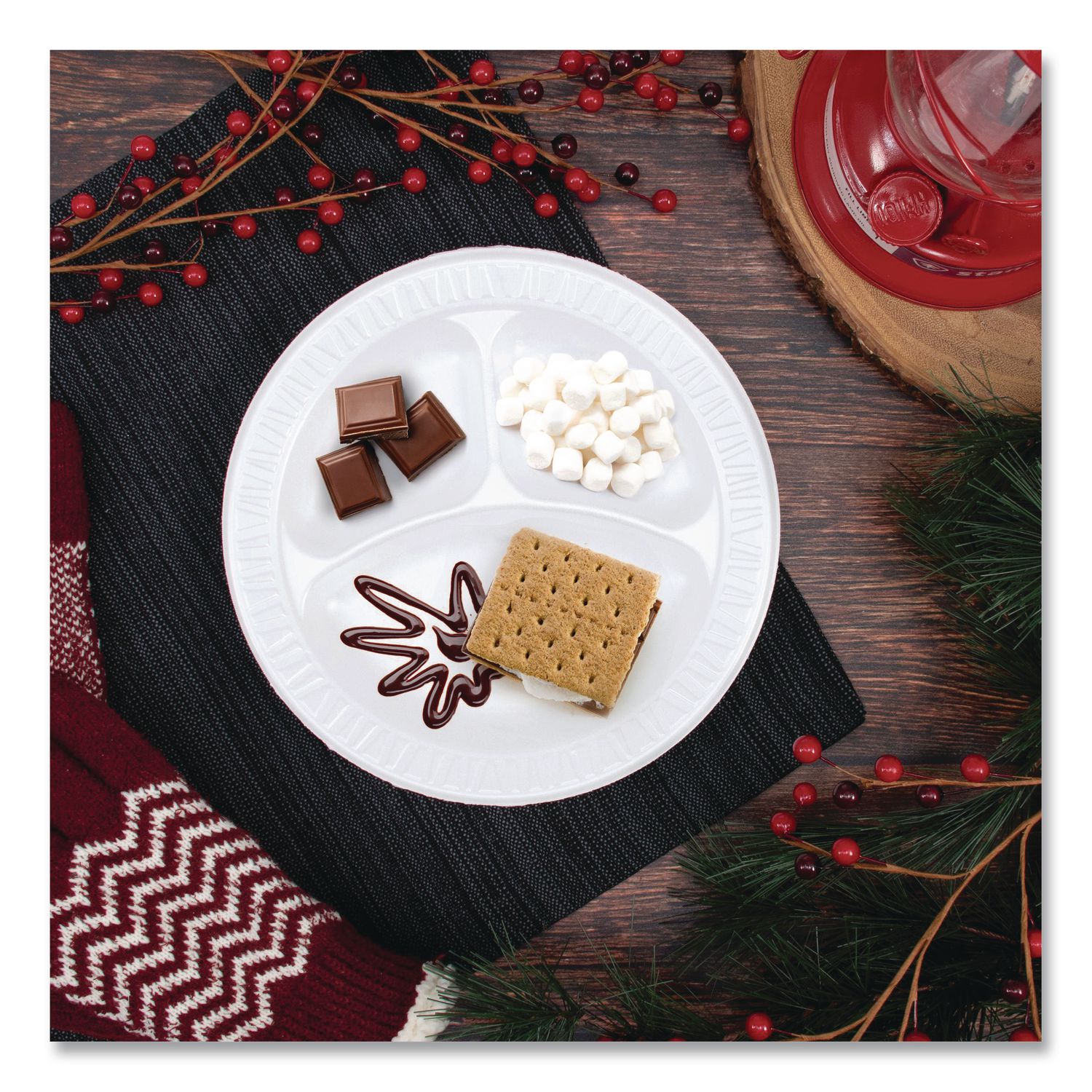 Need dinnerware that holds up to saucy, substantial portions? Look no further! Serve epic meals on this foam dinnerware. Sturdy design is smooth, cut-resistant and soak-proof thanks to the laminated surface. Chow down with confidence since this dinnerware resists bending or buckling under hefty feasts. Keep hands at a comfortable temperature, this dinnerware is insulated. Whether you’re dishing up the best BBQ in town, feeding a crowd from a food truck, or catering an event, this dinnerware will meet your needs and look great doing it. Three-Compartment Plate. Dinnerware Type: 3-Compartment Plate; Material Type: Foam; Material(s): Extruded Polystyrene; Shape: Round.