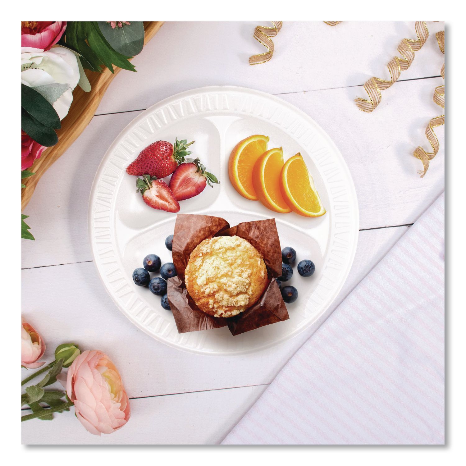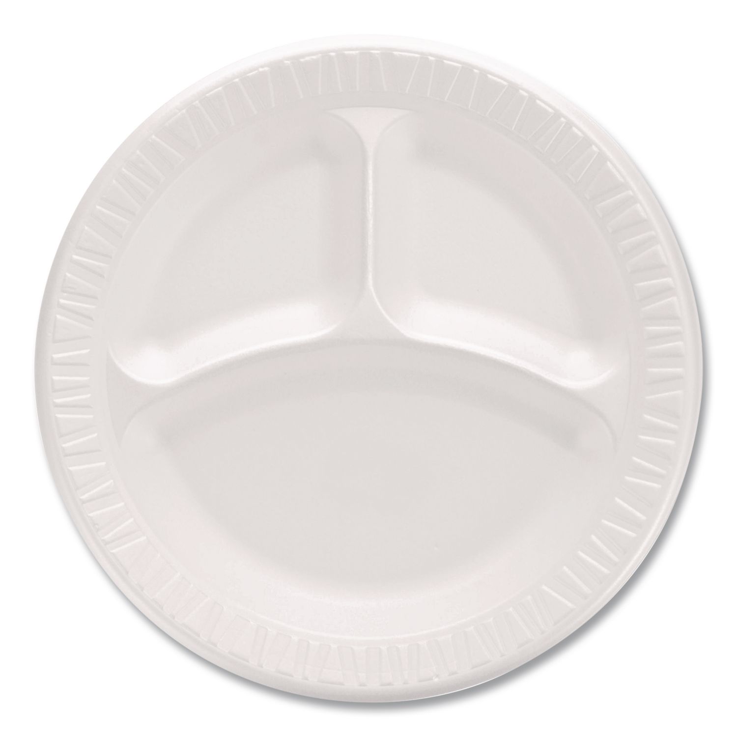 Mediumweight Foam Plates, 3-Compartment Plate, 9″ dia, White, 125/Pack