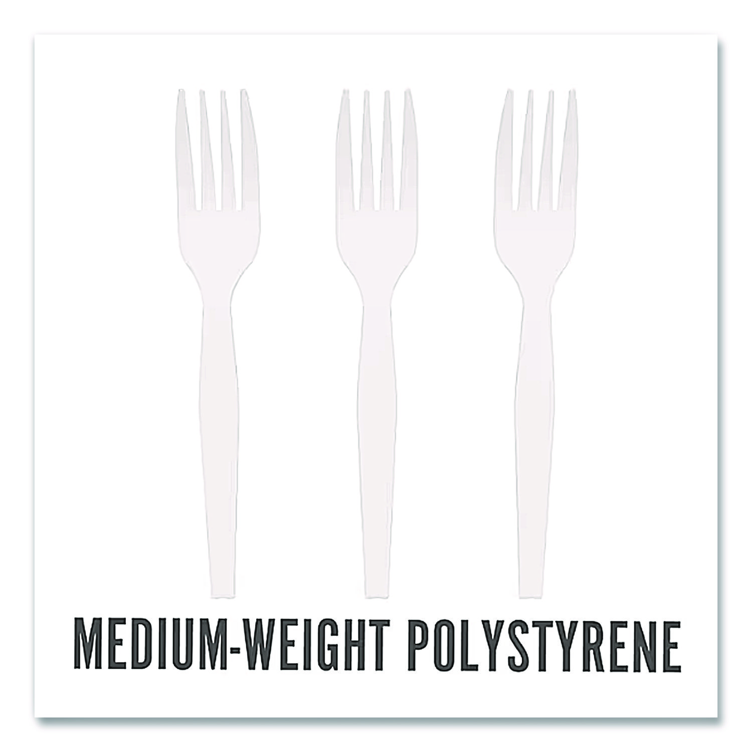Mediumweight Plastic Cutlery, Fork, White, 1,000/Pack