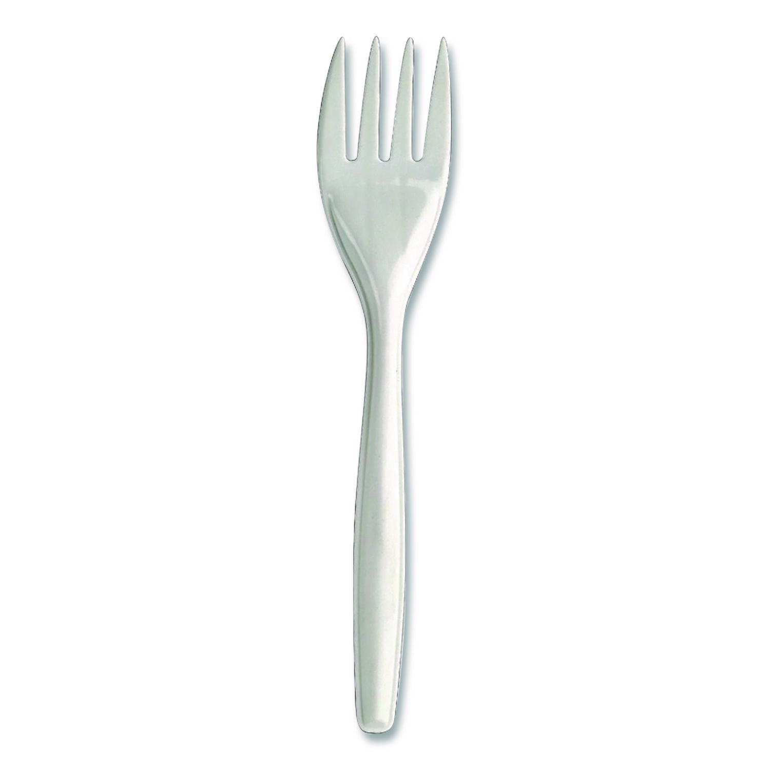 Mediumweight Plastic Cutlery, Fork, White, 300/Pack