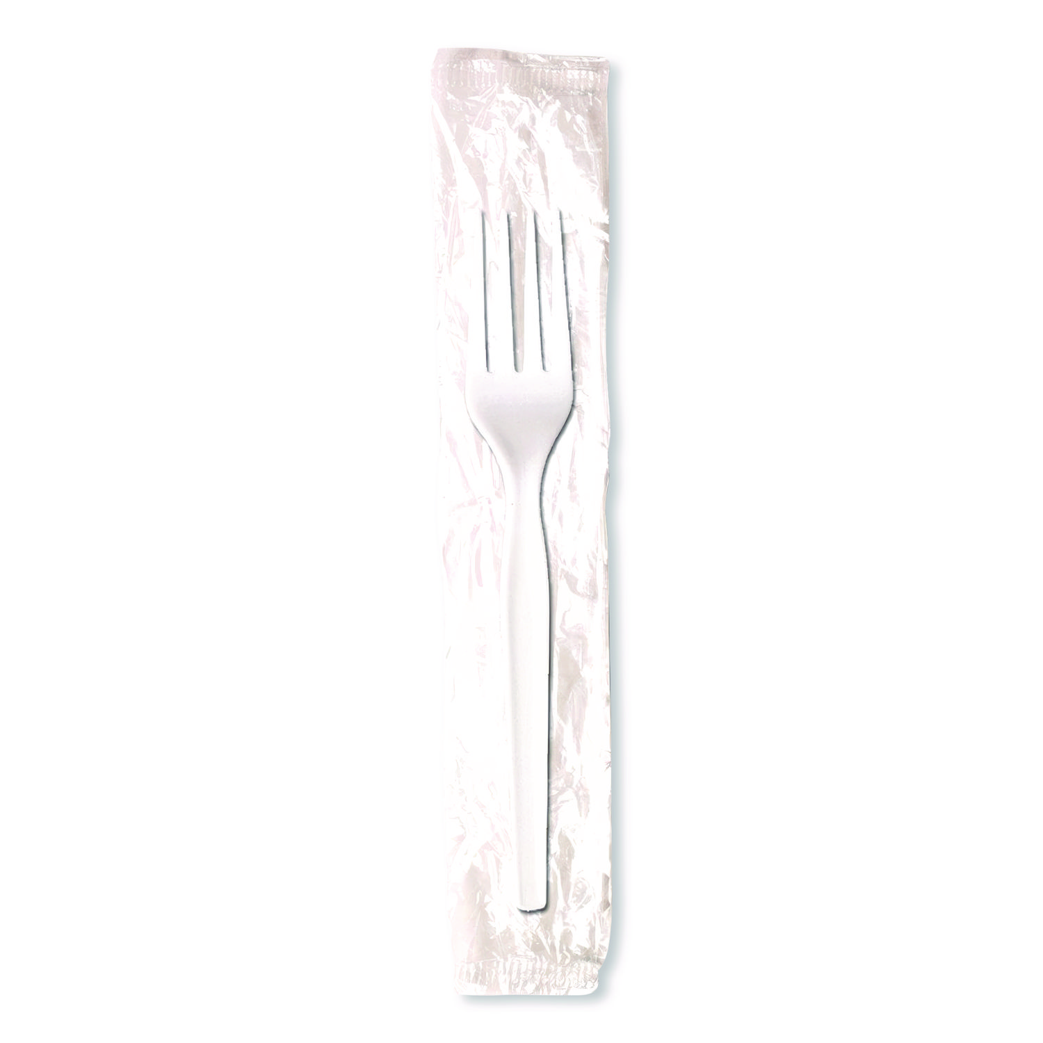 Mediumweight Polystyrene Cutlery, Individually Wrapped, Fork, Plastic, White, 1,000/Carton