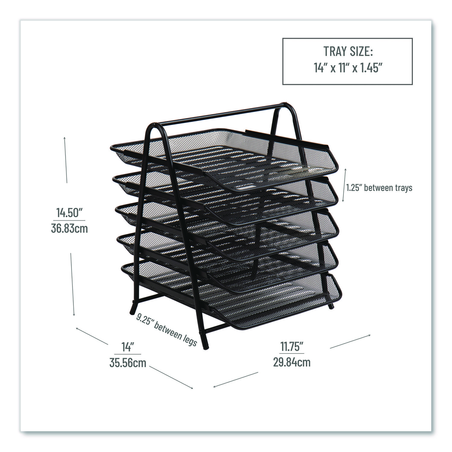Metal Mesh Desk Tray Organizer, 5-Tier, Letter Size, 14 x 11.75 x 14.5, Black