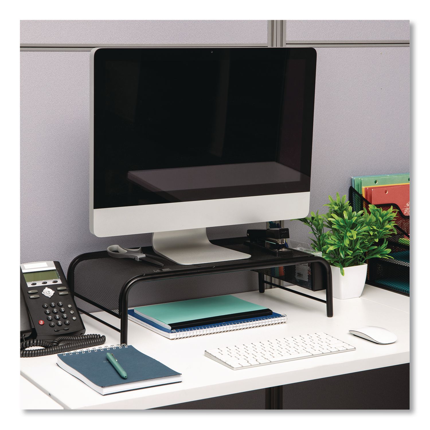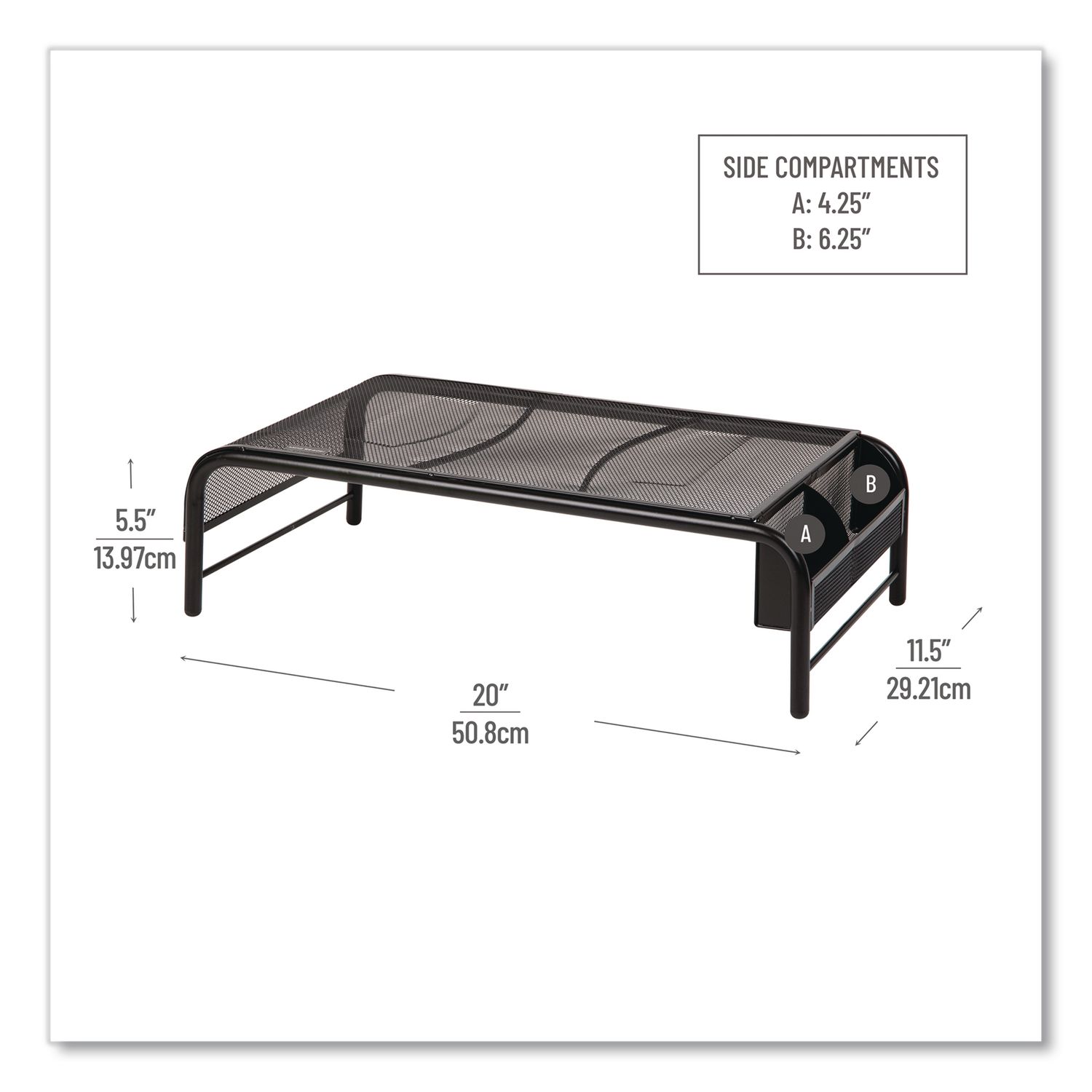 Raise up your monitor to reduce eye and muscle strain while you minimize clutter on your worksurface. Elevating your monitor to the appropriate height helps you maintain good posture, reducing strain and discomfort, and the Mind Reader Metal Mesh Monitor Stand elevates to a comfortable height while its side compartments keep office supplies neatly arranged and close at hand. Sleek and stylish in design with durable, metal mesh construction, it’s ideal for commercial offices, home offices and dorm rooms. Protective, non-slip rubber feet. OEM/Compatible: Compatible; Workstation Type: Traditional Desk/Table; Width (Max): 19″; Depth (Max): 10.5″.