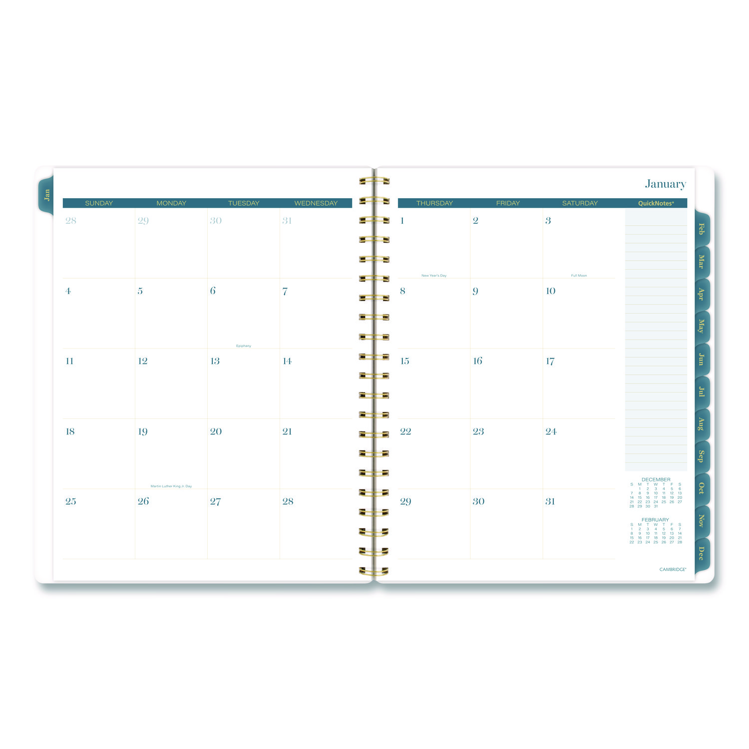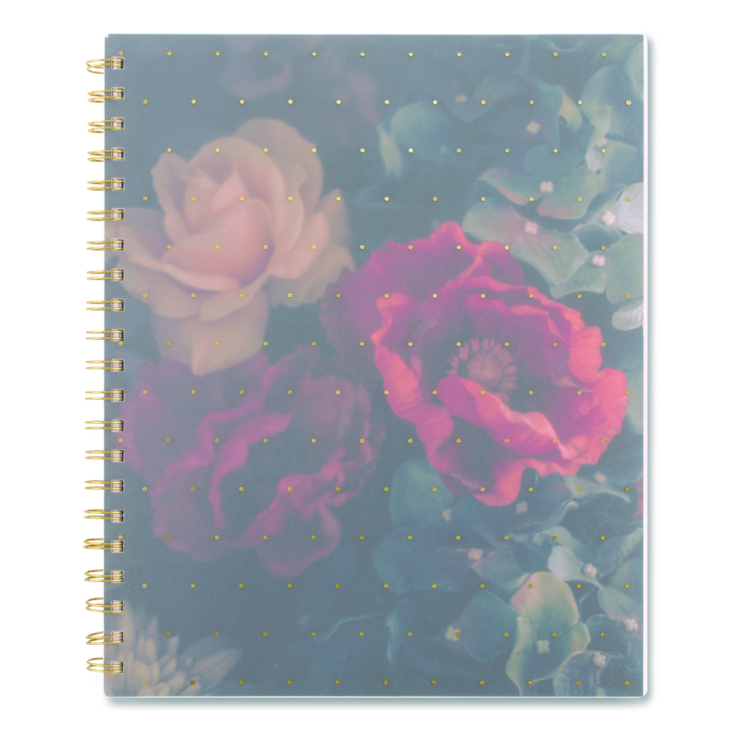 Add a pop of enchanting floral style to your year when you use the Cambridge Midnight Garden Weekly Monthly Planner. The bold florals stand out against the dark background and feature pops of gold accents. Start fresh each week with open daily sections and a small QuickNotes® area to help you stay on track all year long. The tabbed monthly pages help you see your big picture plans in an instant. Who doesn’t love extras? Special pages include a double-sided poly pocket, three-year reference calendar, holiday list and others. The durable poly cover helps the planner stand up to wear and tear no matter where your day takes you. Our twin wire binding helps keep your pages secure and won’t snag on your bag or clothing. Dated: Yes; Academic Year: No; Calendar Format: Weekly/Monthly; Calendar Spread Format: One Week per Two-Page Spread; One Month per Two-Page Spread.