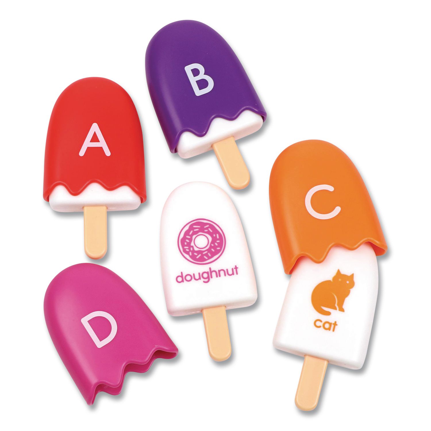 Discover the joy of early literacy with Learning Resources®’ Mini ABC Pops! These colorful popsicle-shaped toys transform alphabet learning into a delightful hands-on experience perfect for little learners. Each of the 26 mini pops features an uppercase letter on its colorful outer shell, which children can pop off to reveal a matching lowercase letter and illustrated vocabulary word inside, reinforcing letter recognition and phonics in one playful motion. Designed specifically for preschoolers, these pops do more than teach letters—they develop crucial fine motor skills as children grasp, twist and manipulate each piece. The satisfying “pop” action engages children’s senses while they practice matching letters to beginning sounds, creating a multisensory learning experience that helps information stick. The set comes complete with a reusable storage jar that makes cleanup simple and storage convenient, perfect for classrooms, homeschool settings or everyday play. The durable, BPA-free plastic construction ensures these educational toys will withstand enthusiastic play session after session. Mini ABC Pops align beautifully with Montessori principles by encouraging self-directed, hands-on learning at the child’s own pace. Whether used for structured alphabet activities or imaginative play scenarios like ice cream shops, these versatile tools keep children engaged while building essential pre-reading skills. Subject Area: Language Arts; Specific Subject: Letter Recognition & Phonics; Age Recommendation: Ages 3 and Up; Grades: Pre-K to K.