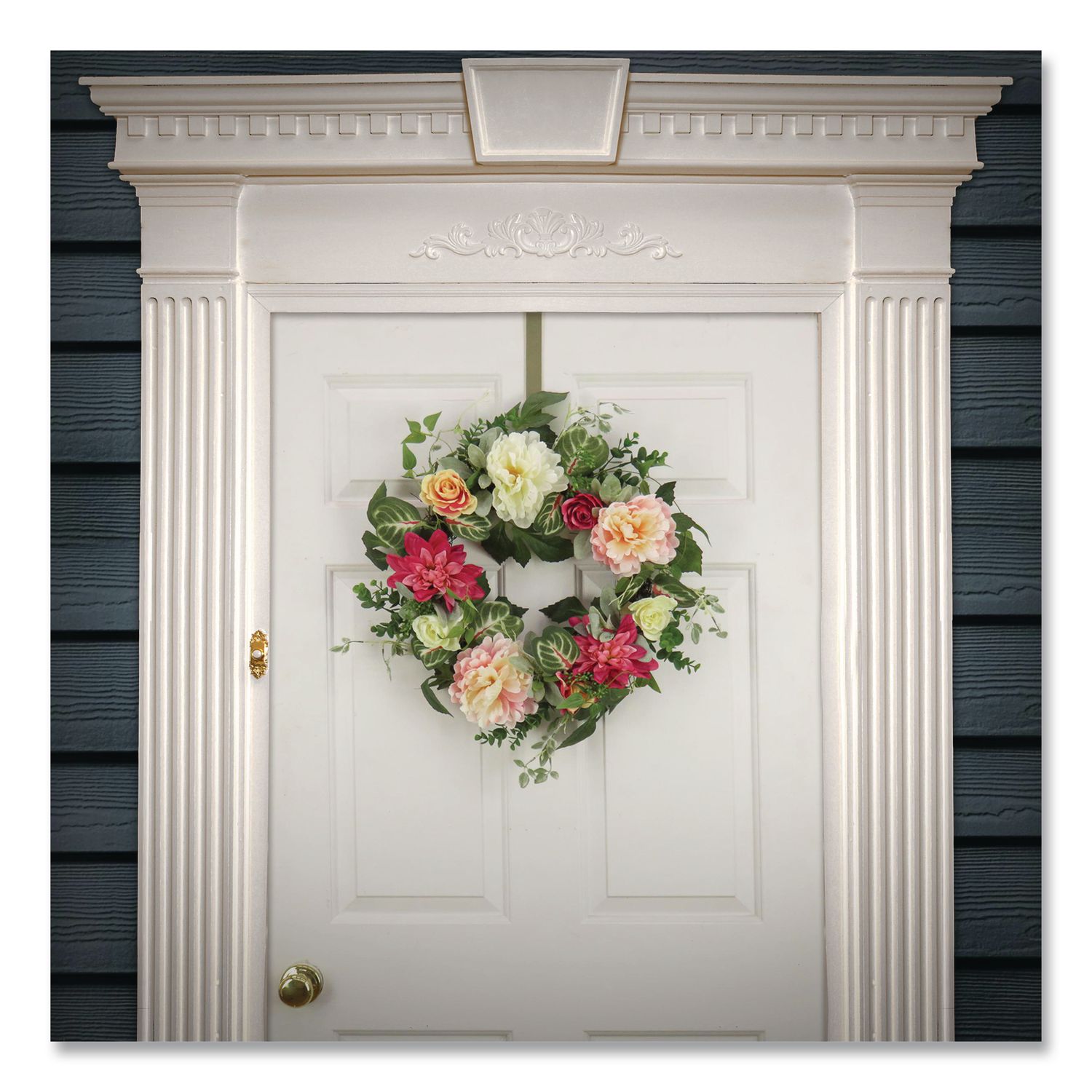 This Spring-flavored wreath features assorted flower blooms in soft pastel colors swirling around a woven branch ring base. A bed of varying leafy greens, slender stems, and seed clusters add complementing colors and natural appeal. Welcome the Spring with this festive wreath that brings a fresh burst of seasonal charm to your front door, wall or window. Holiday/Season: Spring; Indoor/Outdoor: Indoor/Outdoor; Color(s): Pink; Color Family: Pink.