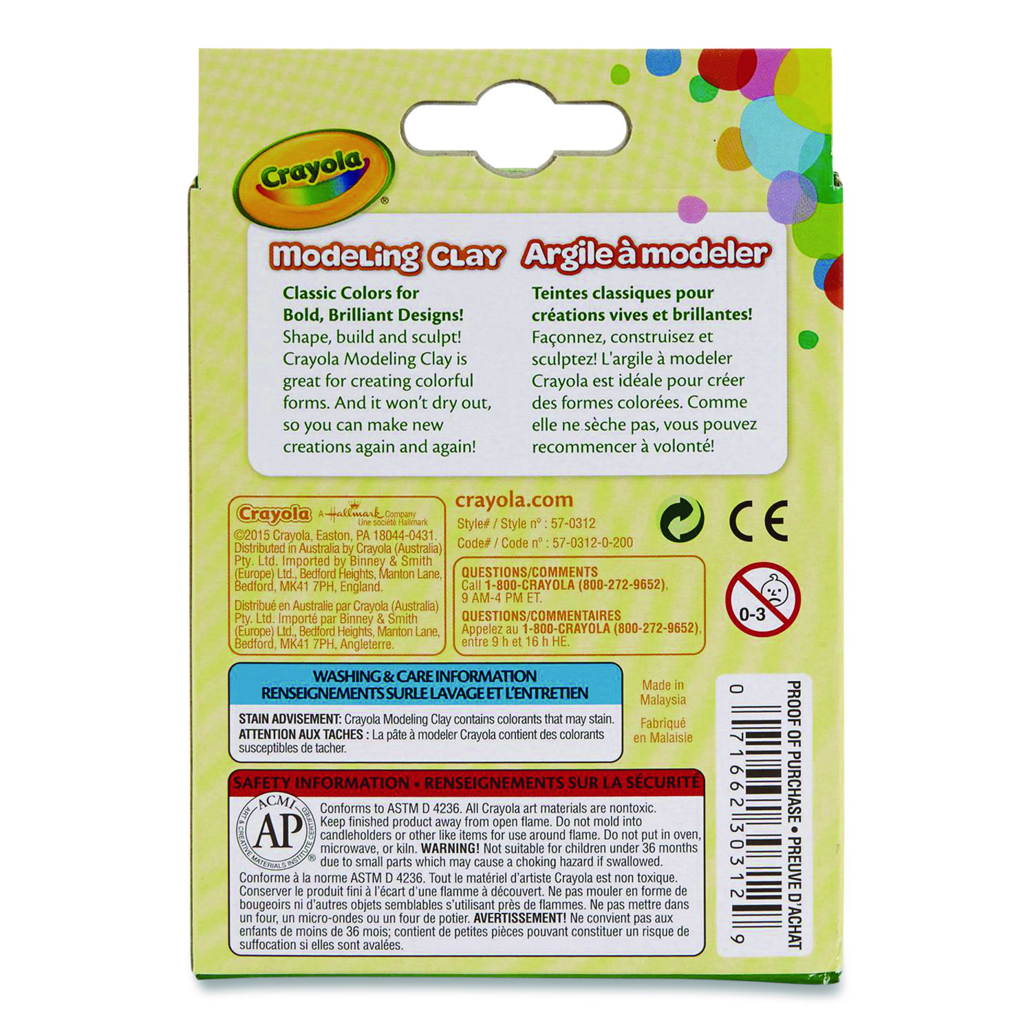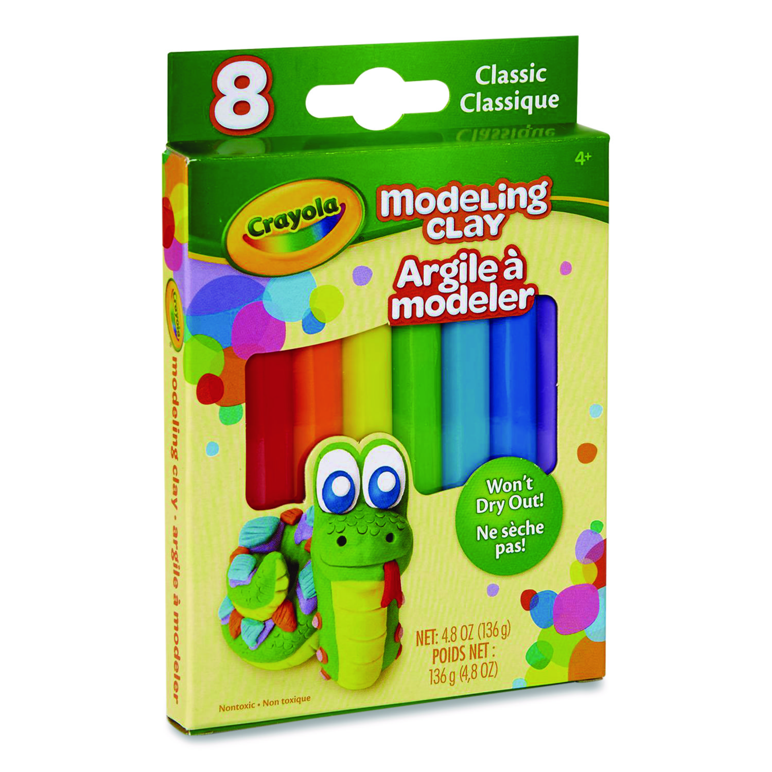 Crayola Modeling Clay is a versatile, non-hardening clay that is completely reusable. It stays soft even after molding, ensuring it can keep up with your child’s imagination. It’s designed with a wax and oil based formula, which makes it water-resistant. Plus, Crayola Clay is created with non-toxic materials so parents don’t have to worry! Let imaginations take shape with this reusable, non-drying clay in classic colors! Makes a great stocking stuffer or everyday gift for kids. 4.8 oz Pack. Clay/Pottery Type: Modeling; Color(s): Assorted; Age Recommendation: Ages 4 and Up; Color Assortment: Blue; Green; Light Blue; Orange; Pink; Purple; Red; Yellow.