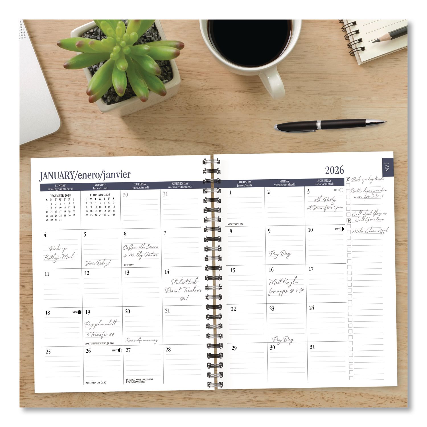 | Calendar Spread Format: | One Week per Two-Page Spread; One Month per Two-Page Spread |