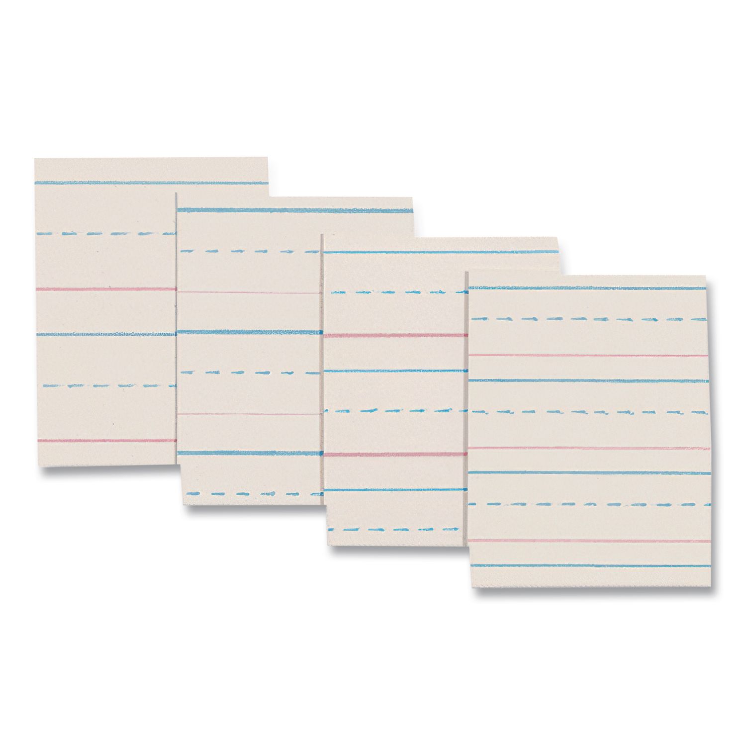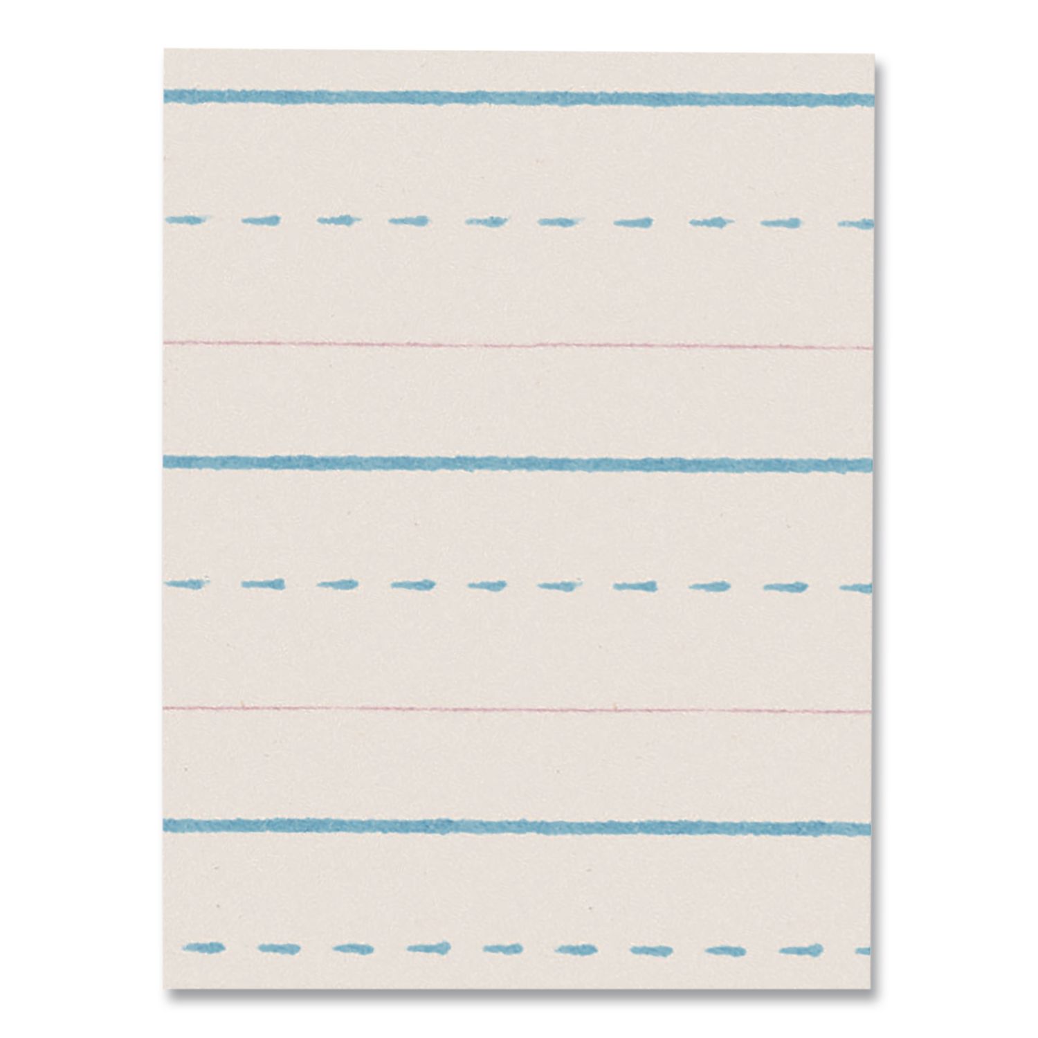 Rulings conform to Zaner-Bloser™ and/or D’Nealian™ handwriting programs. Bright tablet paper ruled on both sides with red baselines, blue dotted midlines and blue headlines. 1/2″ (Long) Ruling—Has dotted line and skip space of 1/4″ each. Conforms to Zaner-Bloser™ Grade 2. Sheet/Roll Size: 8 x 10.5; Paper Basis Weight (lb): 30 lb Bond; Paper/Media Color(s): White; Color Family: White.