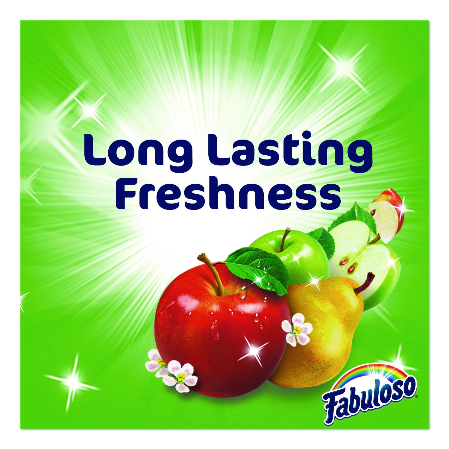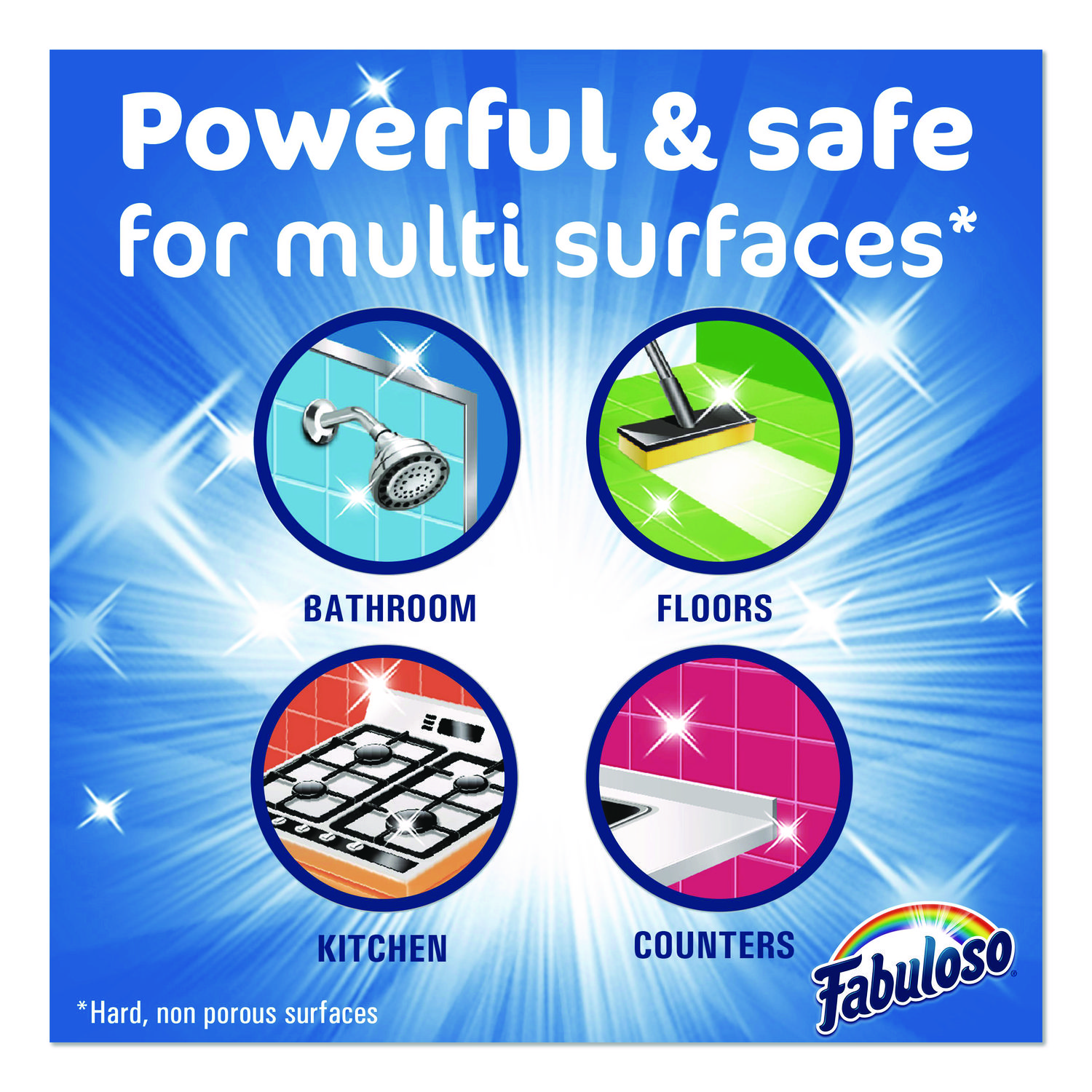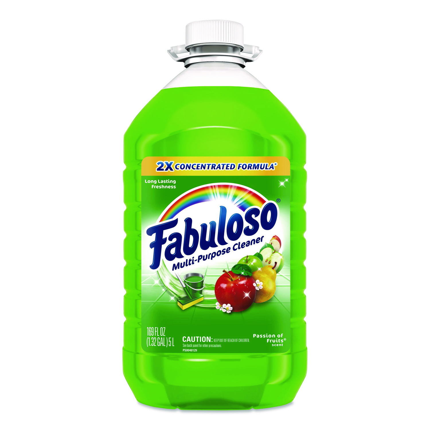 Fabuloso® Multi-Purpose Cleaner, 2X Concentrated Formula transforms your home or business with a fresh scent that lasts. Bring the fragrance of Fabuloso® indoors, and experience a warm, joyful feeling your friends and family will love. Fabuloso® 2X Concentrated Formula now provides 2x more active ingredients compared to non-concentrated Fabuloso Original, giving you 2x the dosage in the same bottle. Every colorful pour from the easy-pour bottle delivers a long-lasting, unmistakable freshness and leaves your home bright and clean. Use Fabuloso® Multi-Purpose Cleaner, on sinks, toilets, tubs, showers, kitchen and bathroom floors, sealed wood surfaces, appliances, counters, windows, mirrors, walls, doorknobs and furniture, and fill every room in your home with joy. Application: All-Purpose; Applicable Material: Granite; Marble; Porcelain; Sealed Surfaces; Stainless Steel; Tile; Walls; Dirt Types: Dirt; Grease; Grime; Scent: Passion of Fruits®.