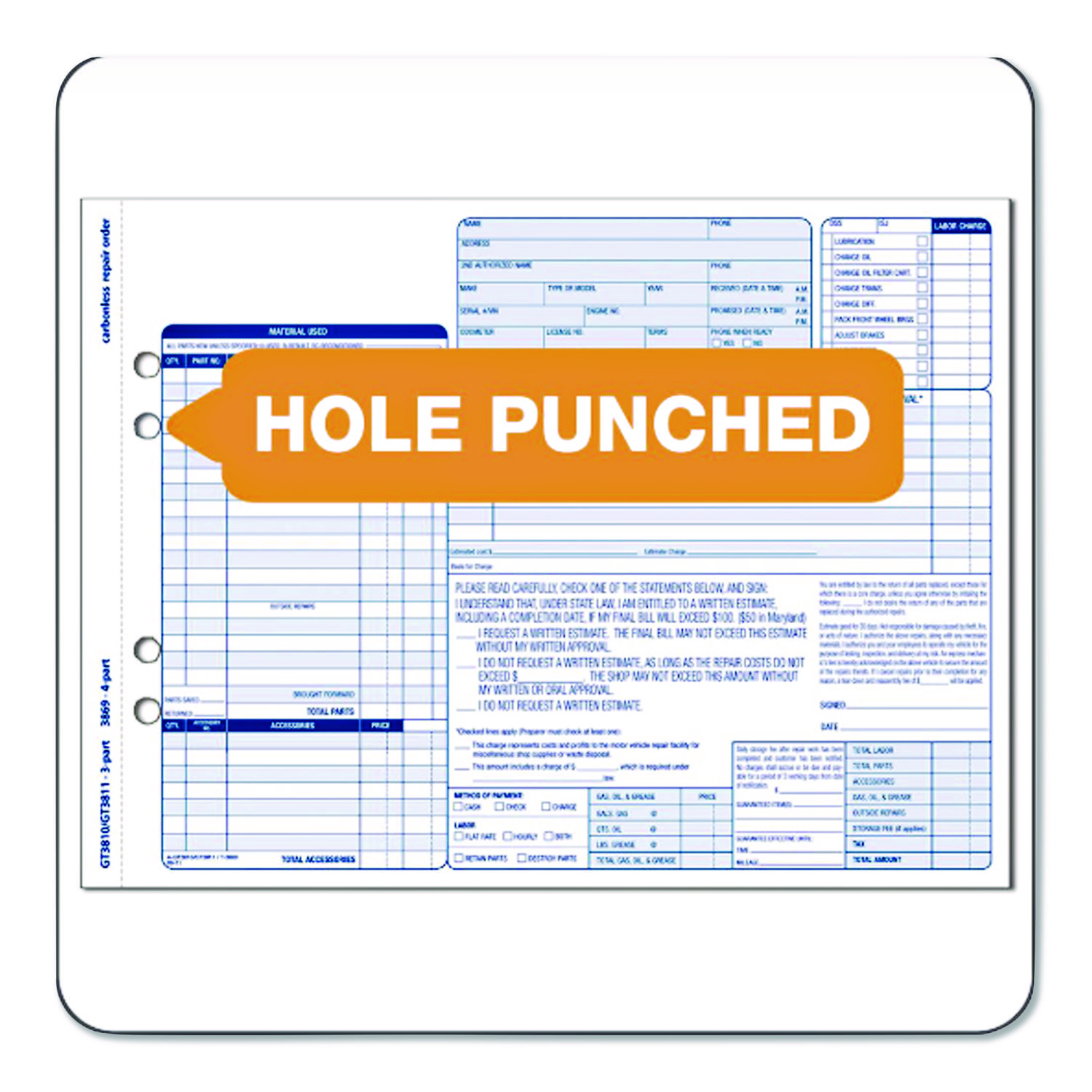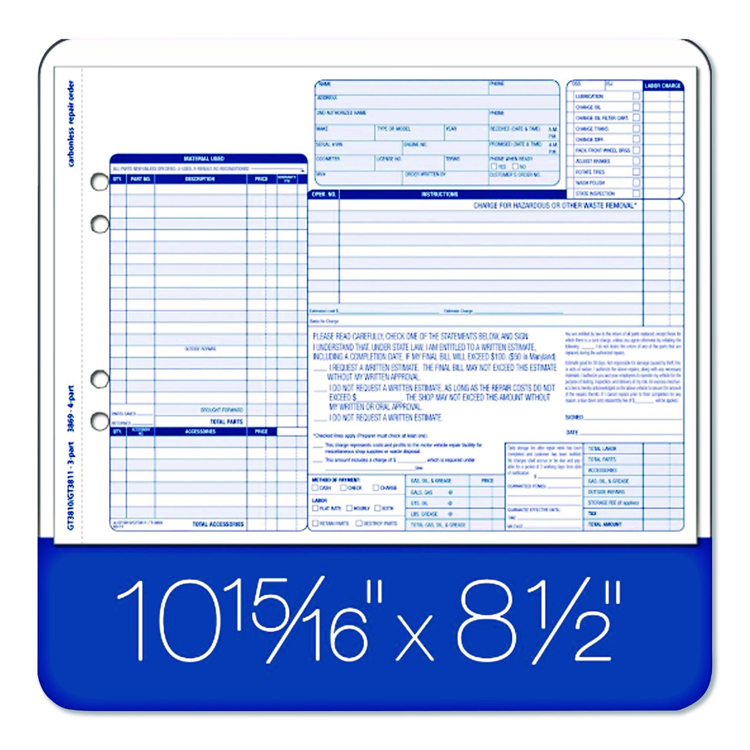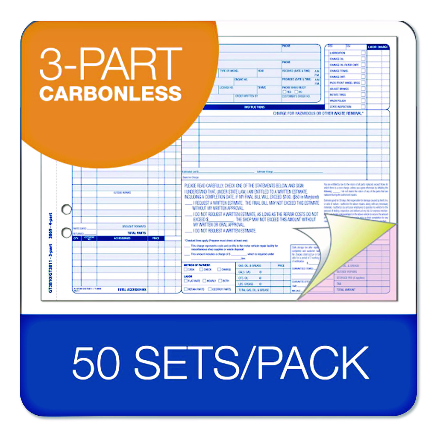 Multipart Auto Repair Work Order Forms with Checklist for Routine Jobs, Three-Part Carbonless, 10.94 x 8.5, 50 Forms Total