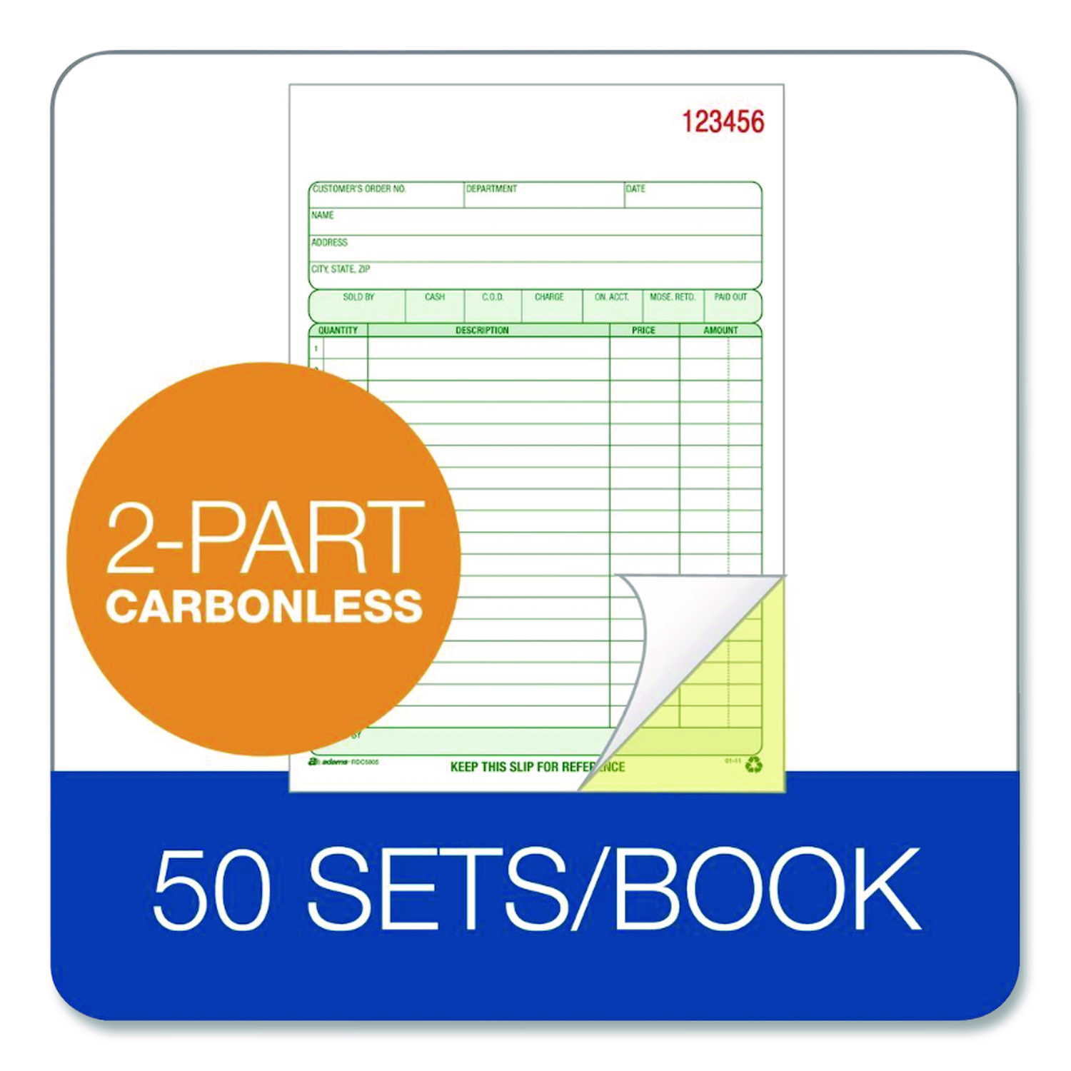Carry Adams® Multipart General-Purpose Sales Pads wherever a receipt, guest check or work order might be required. Though they’re preformatted, their layout can be adapted to just about any sale or workorder—repair/maintenance services, retail sales, food orders and more. Multipart format lets you provide a receipt and keep a master for yourself. Carbonless paper produces clean, smudge-free results. Wraparound cover allows you to place the cover between sets as you fill out a form, minimizing the potential for write-through. Consecutively numbered with space at top for your business’s logo or name stamp. Form Type Details: Invoice/Receipt; Dated: No; Forms Per Page: 1; Form Size: 5.56 x 7.94.