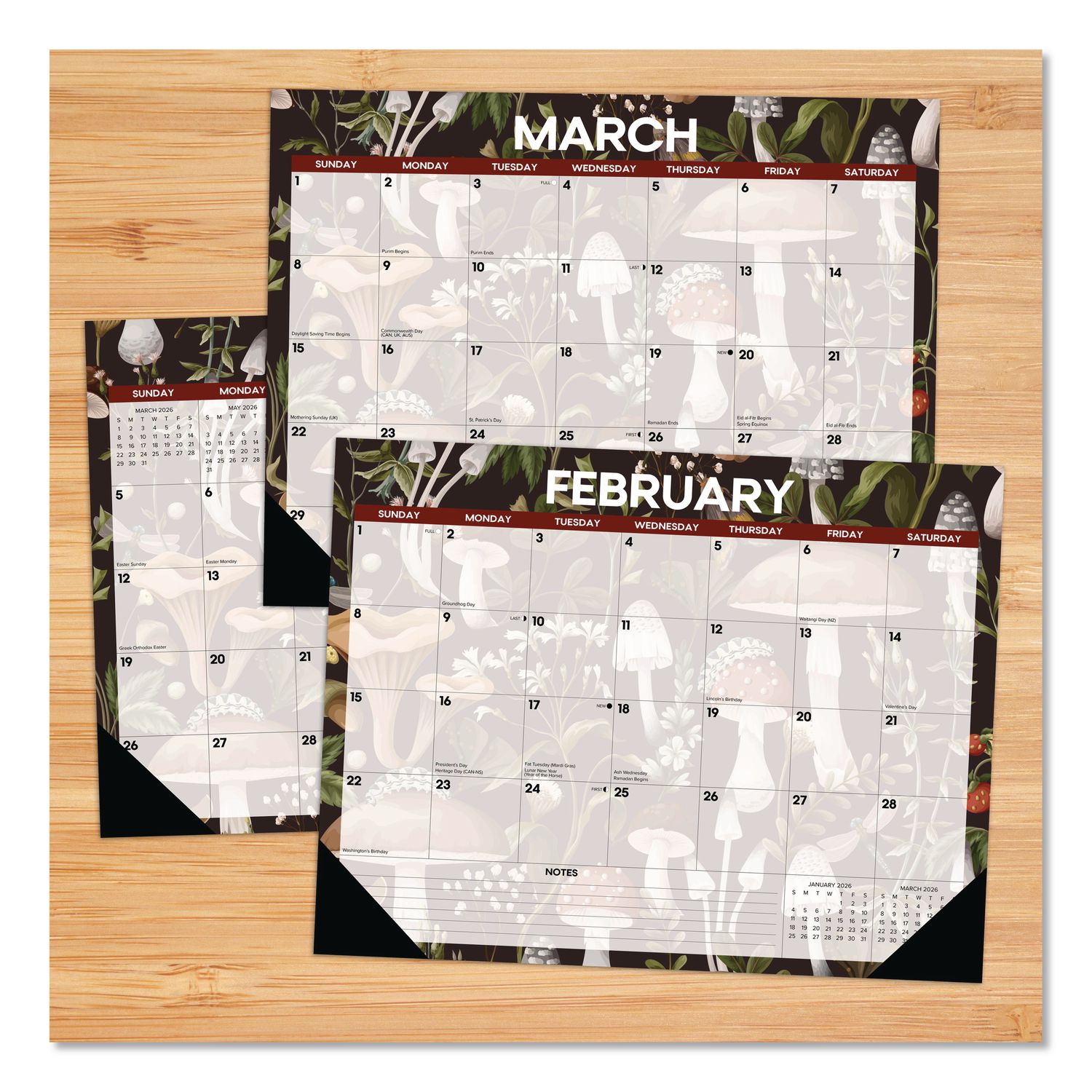 Mushrooms Large Monthly Desk Pad Calendar, 22 x 17, Multicolor Sheets, Black Headband/Corners, 12-Month (Jan to Dec) 2026