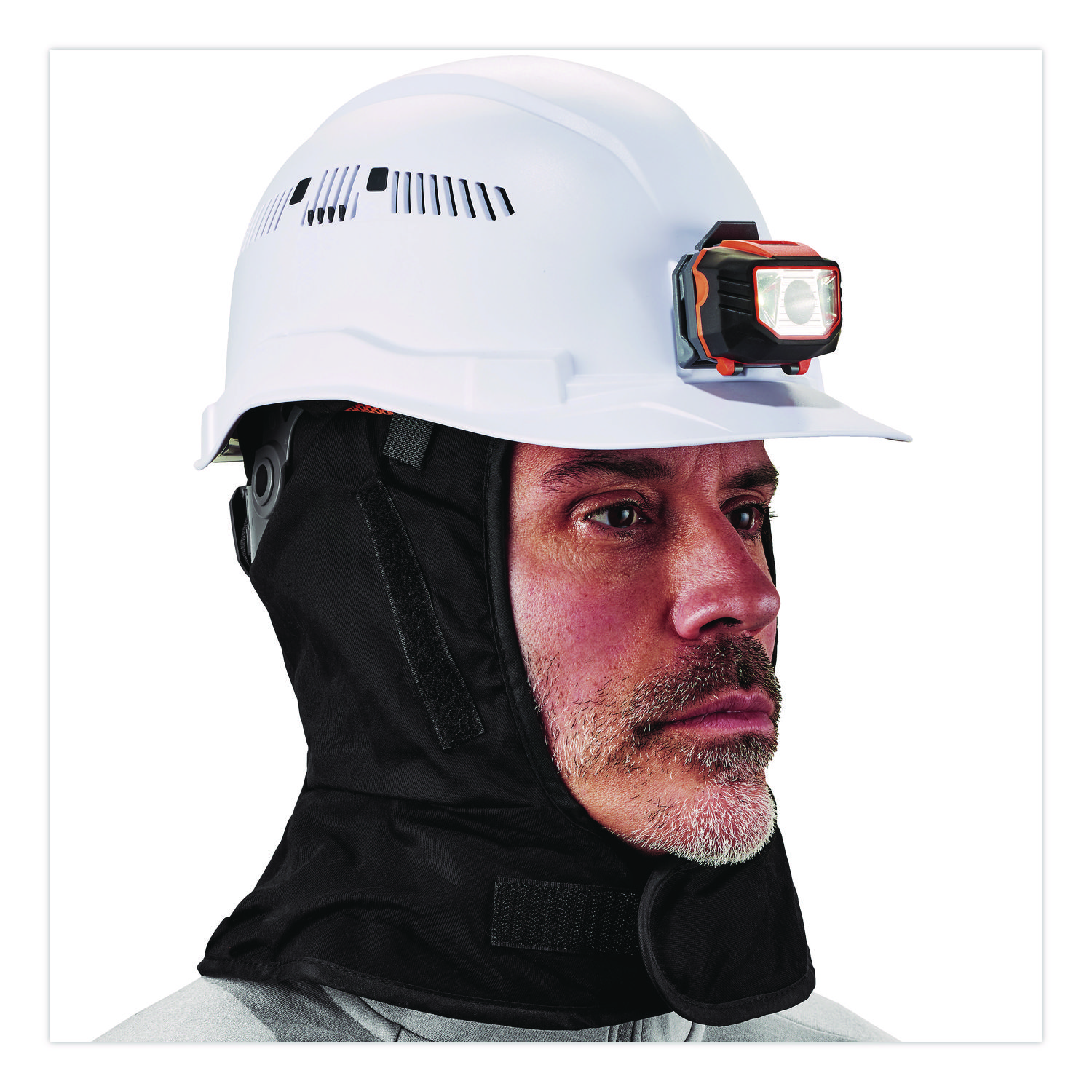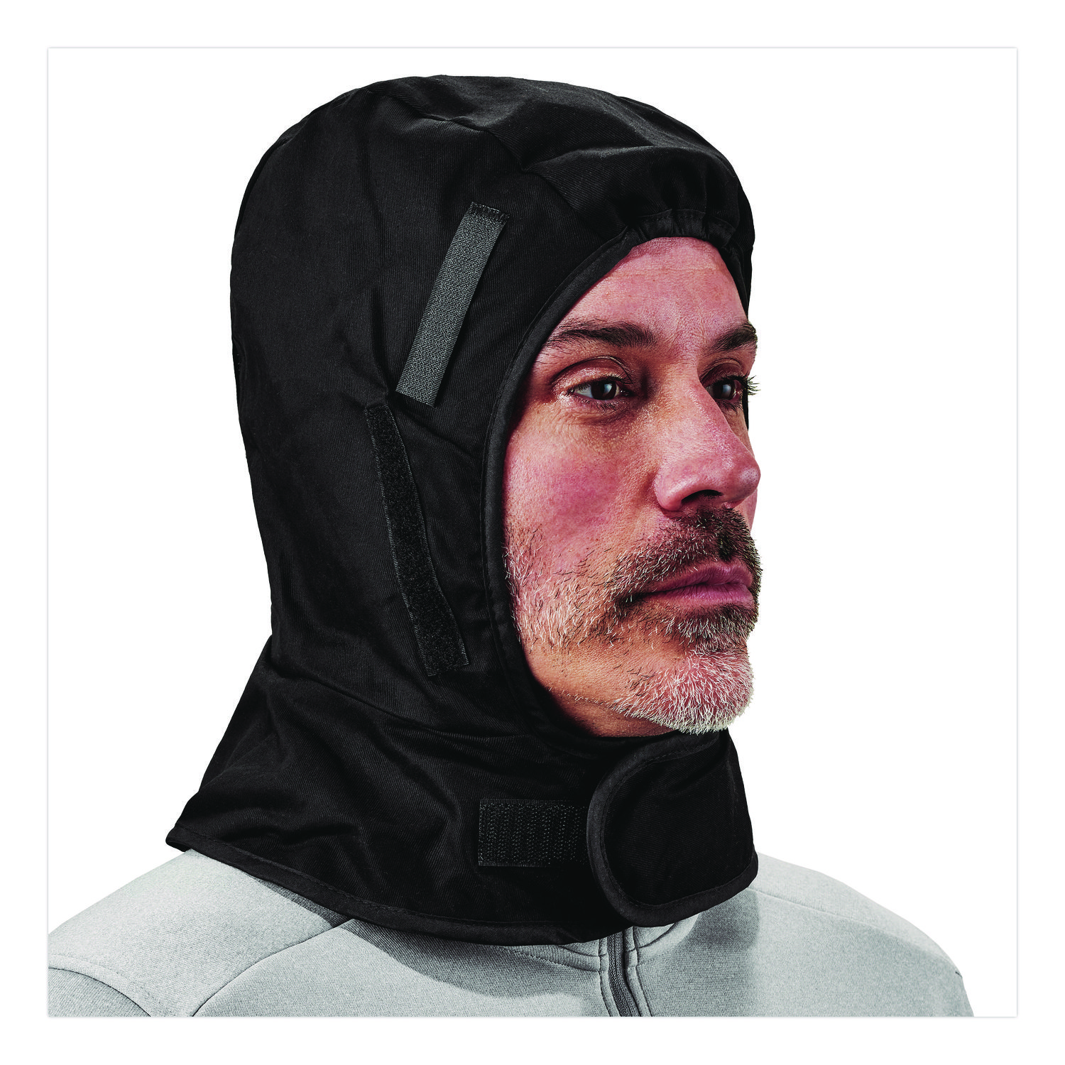 The N-Ferno 6852 Winter Hard Hat Liner has two layers of insulation with a cotton shell and a comfortable polyester fleece lining for exceptional warmth. This lightweight thermal liner is shoulder-length to keep head, ears and neck covered and fits comfortably under helmets or hard hats without feeling too bulky. The outer shell is made with 100% cotton twill to stand up to tough environments. The 100% polyester fleece lining is soft to the touch for a comfortable all-day fit. There are four hook and loop straps on the exterior of the liner designed to securely attach to the interior of a hard hat for versatile protection in extreme work environments. This hard hat winter liner has an elastic strip in the forehead area to keep the liner snug against the face to trap body heat in and keep cold out. Small pockets by the ears are designed to hold regular-sized hand warmers (sold separately) to keep ears warm and comfortable in extreme temperatures. Apparel Type: Winter Liner; Material(s): Cotton; Fleece; Color(s): Black; Color Family: Black.