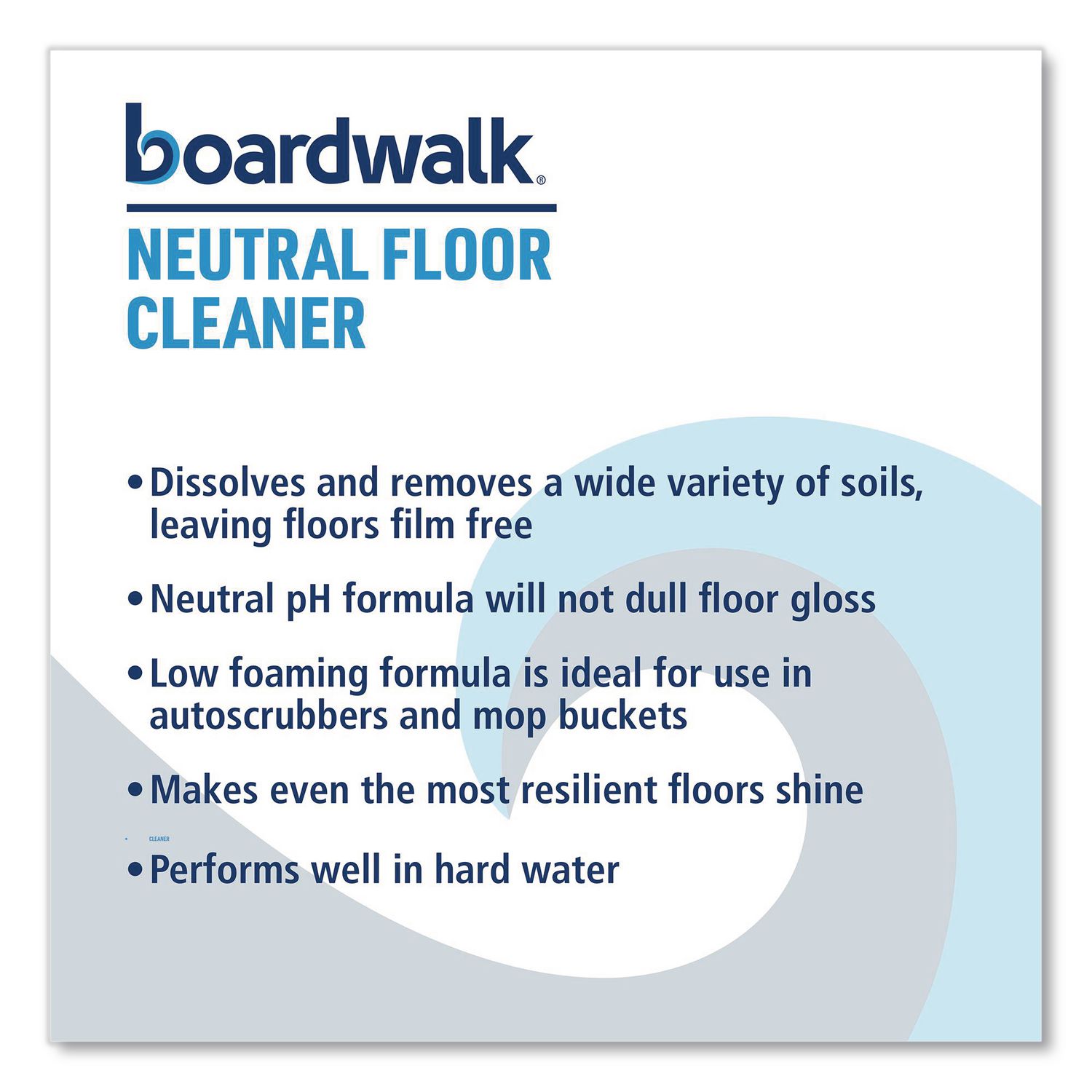 This mild cleaner will emulsify and suspend dirt and grime from tabletops to floors; from spray bottle to auto scrubber. Safe for use on most hard surfaces. Application: Floor Cleaner/Degreaser; Applicable Material: Masonry; Sealed Wood; Stone; Tile; Chemical Compound: Solvent; Surfactant; Dirt Types: Dust; Food Residue; Grease; Grime; Scuff Marks; Soil; Spills.