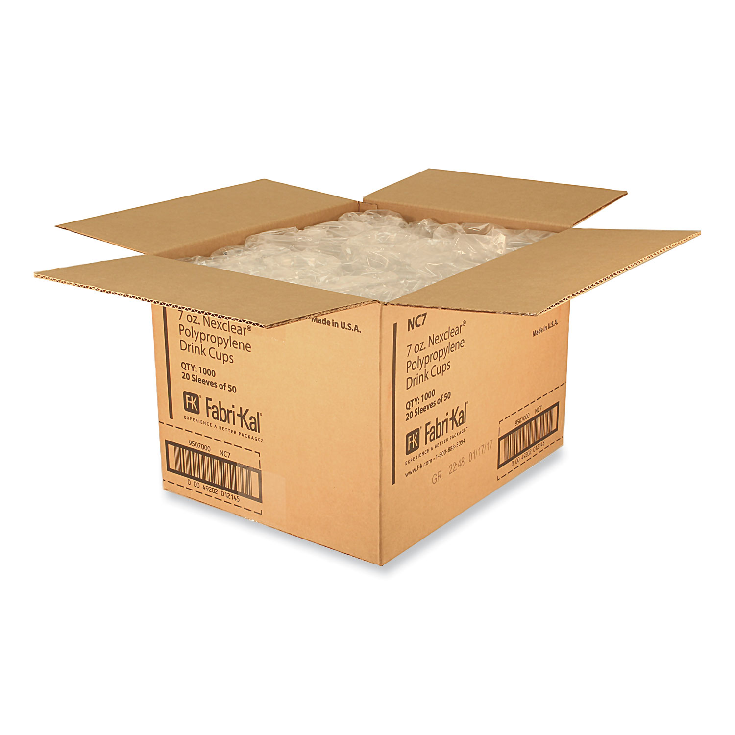 Nexclear Polypropylene Drink Cups, 7 oz, Plastic, Clear, 50/Bag, 20 Bags/Carton