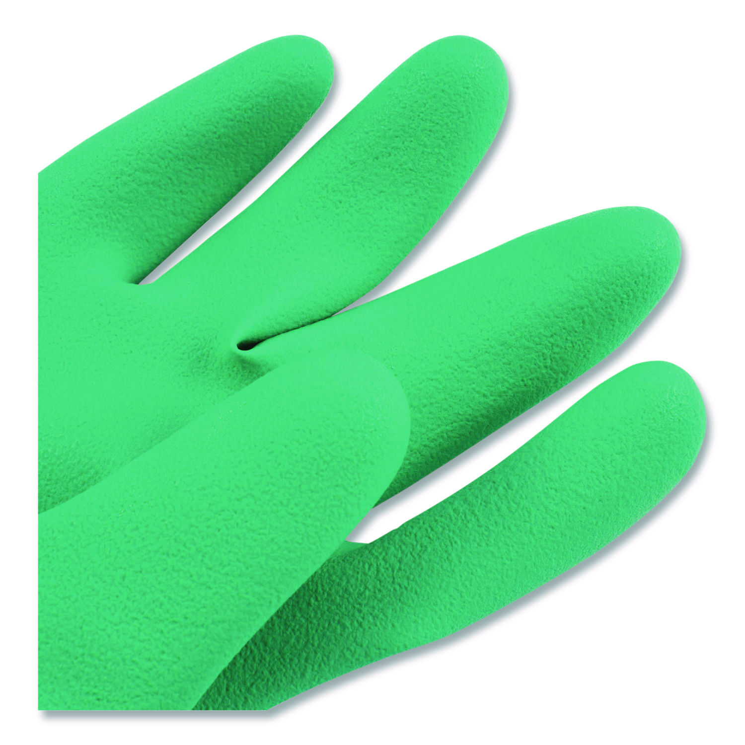 These Nitrile Dishwashing Gloves feature a thick nitrile rubber exterior. They offer heat protection up to 185° F. The embossed grip is designed for serious scrubbing of pots, sinks and everyday kitchen applications. The flexible gloves cover the length of arms up the elbows for splash protection. Anti-Vibration: No; Size Type: Small; Color(s): Green; Color Family: Green.