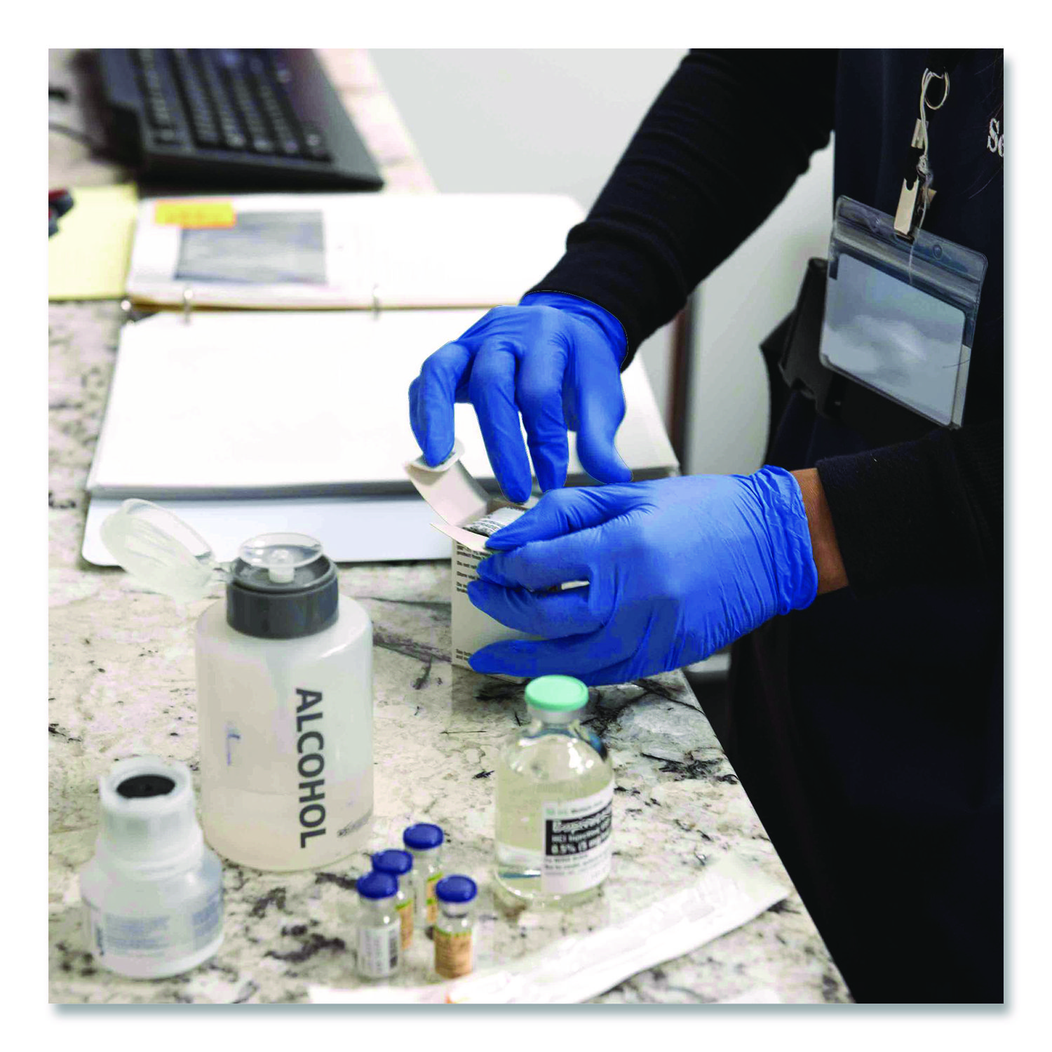 Nitrile Exam Gloves, Powder-Free, Large, 3 mil Thick, 9.5″ Long, Blue, 100/Box, 10 Boxes/Carton