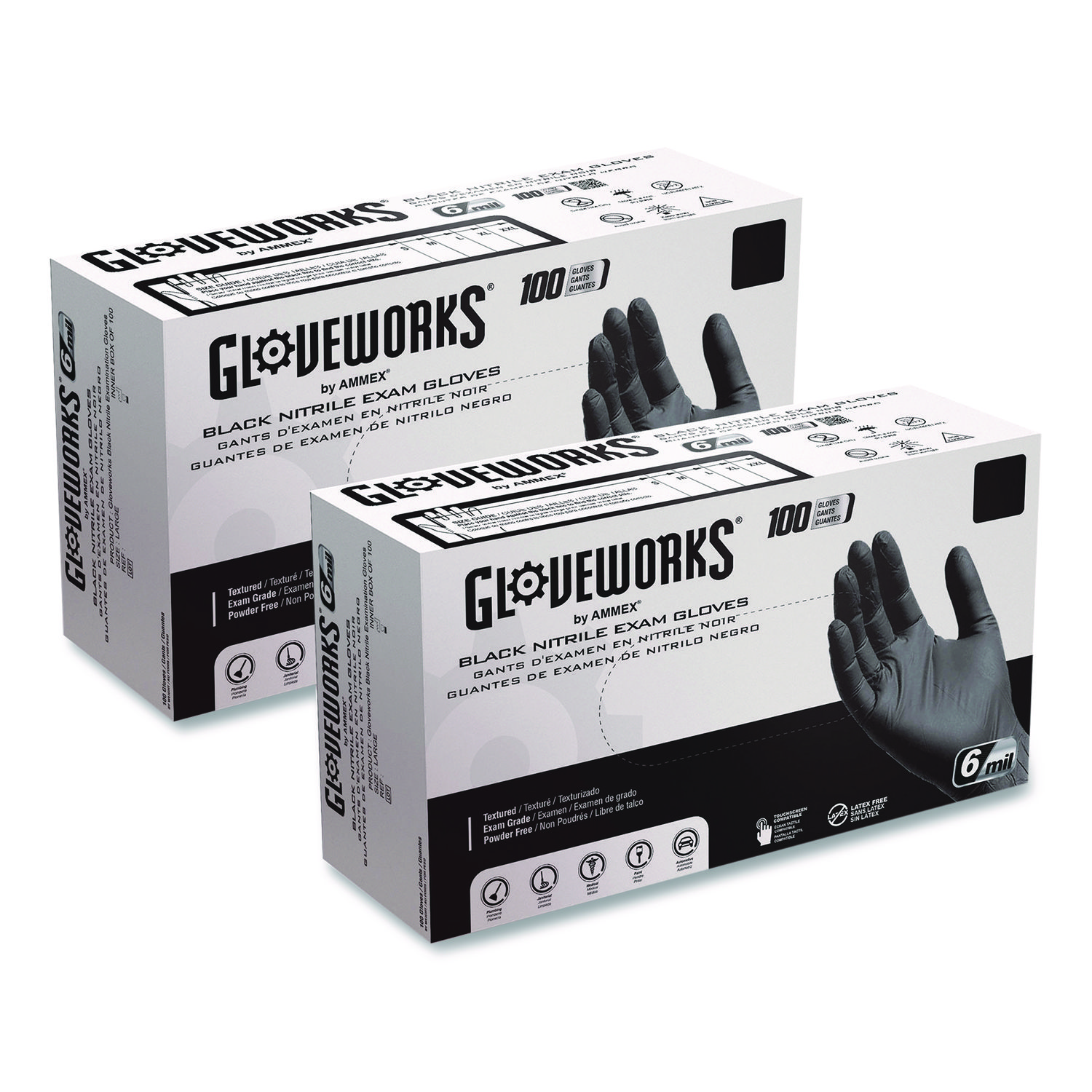Nitrile Exam Gloves, Powder-Free, Small, 6 mil Thick, 9.5″ Long, Black, 100/Box