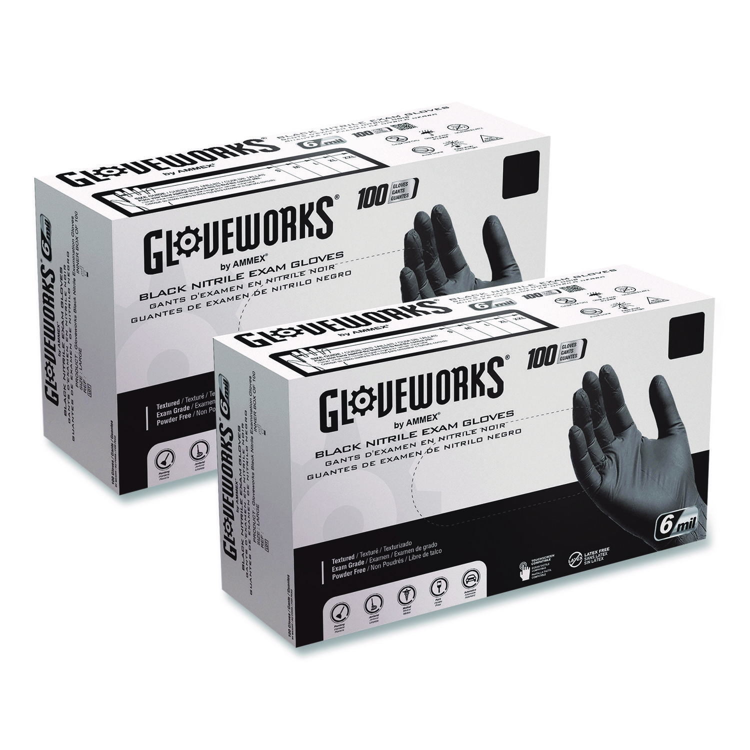 Nitrile Exam Gloves, Powder-Free, XX-Large, 6 mil Thick, 9.5″ Long, Black, 100/Box