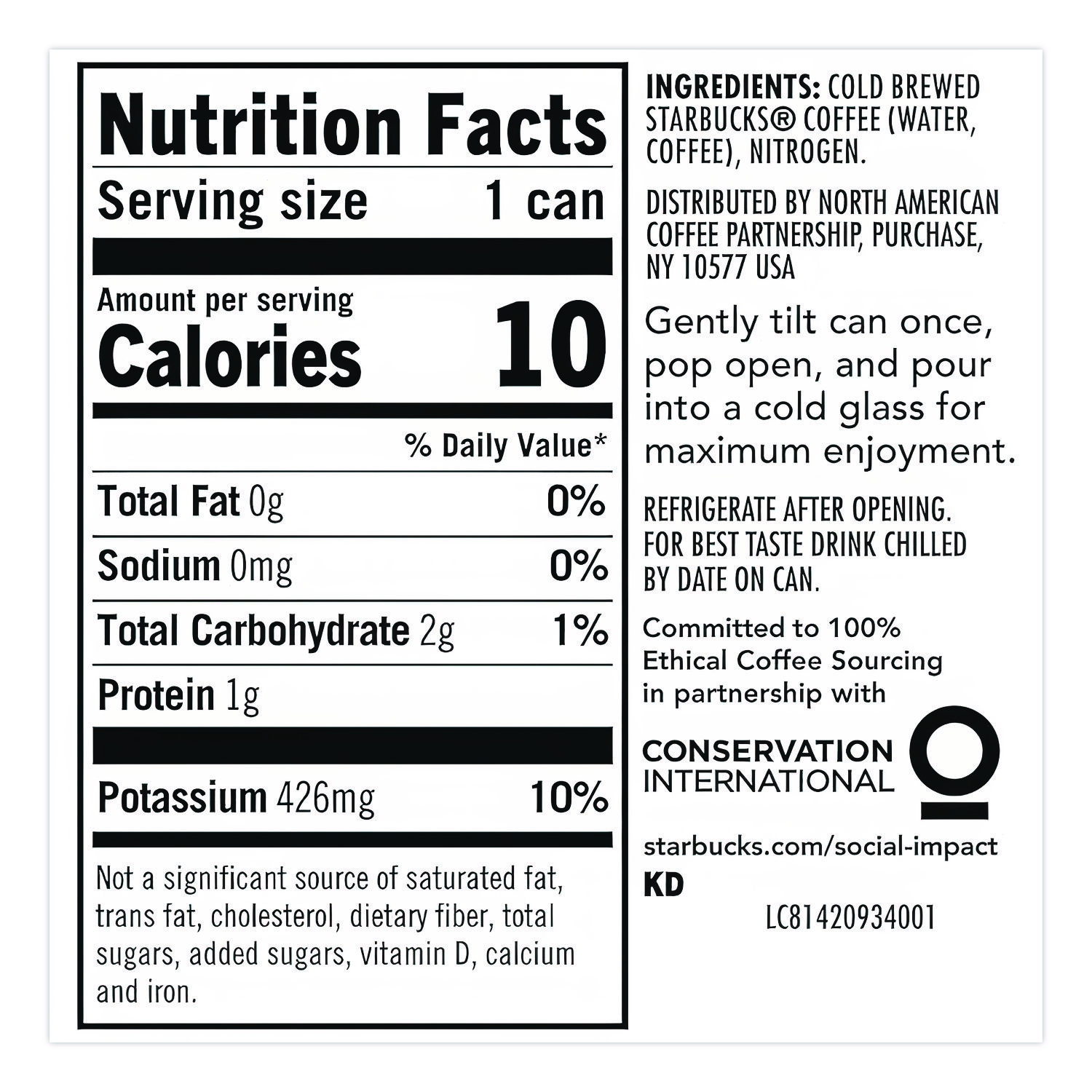 Delicious cold brew coffee infused with nitrogen the minute you open it, creating a rush of creamy texture and velvety smooth taste. Made from a premium blend of beans, specially selected to brew without heat. Gently tilt the can once, pop open and pour into a cold glass for maximum enjoyment. Convenient can lets you enjoy your favorite coffee beverage wherever and whenever you want. Beverage Type: Coffee Drink; Flavor: Black Unsweetened; Product Packaging: Can; Volume Capacity: 9.6 oz.