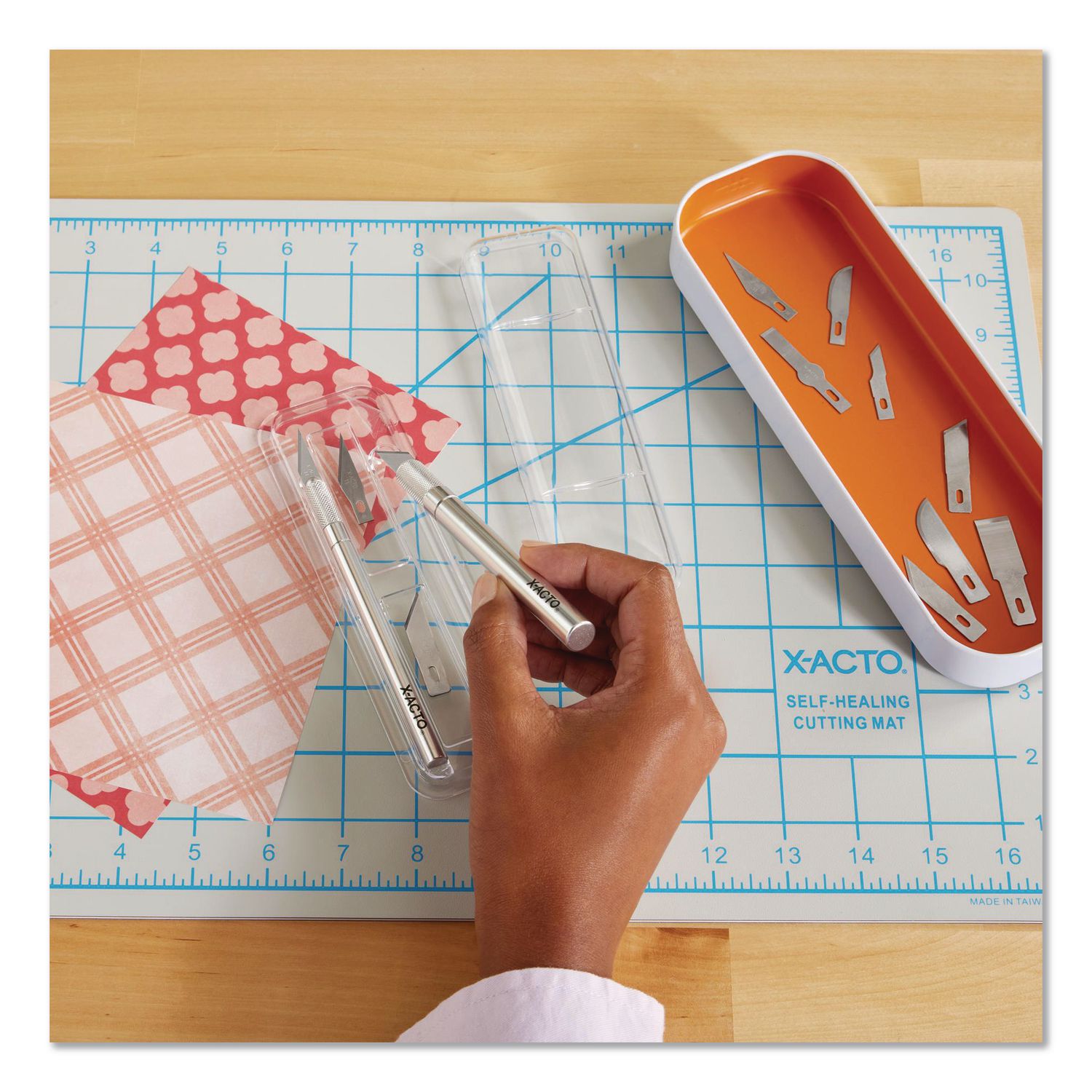 The X-ACTO #1 Precision Knife is great for delicate precision cutting, trimming, and stripping. It cuts paper, plastic, balsa, thin metal, cloth, film and acetate. Features a lightweight handle. Knife Type: Utility; Blade Type: Replaceable; Number of Blades: 5; Applicable Material: Aluminum.