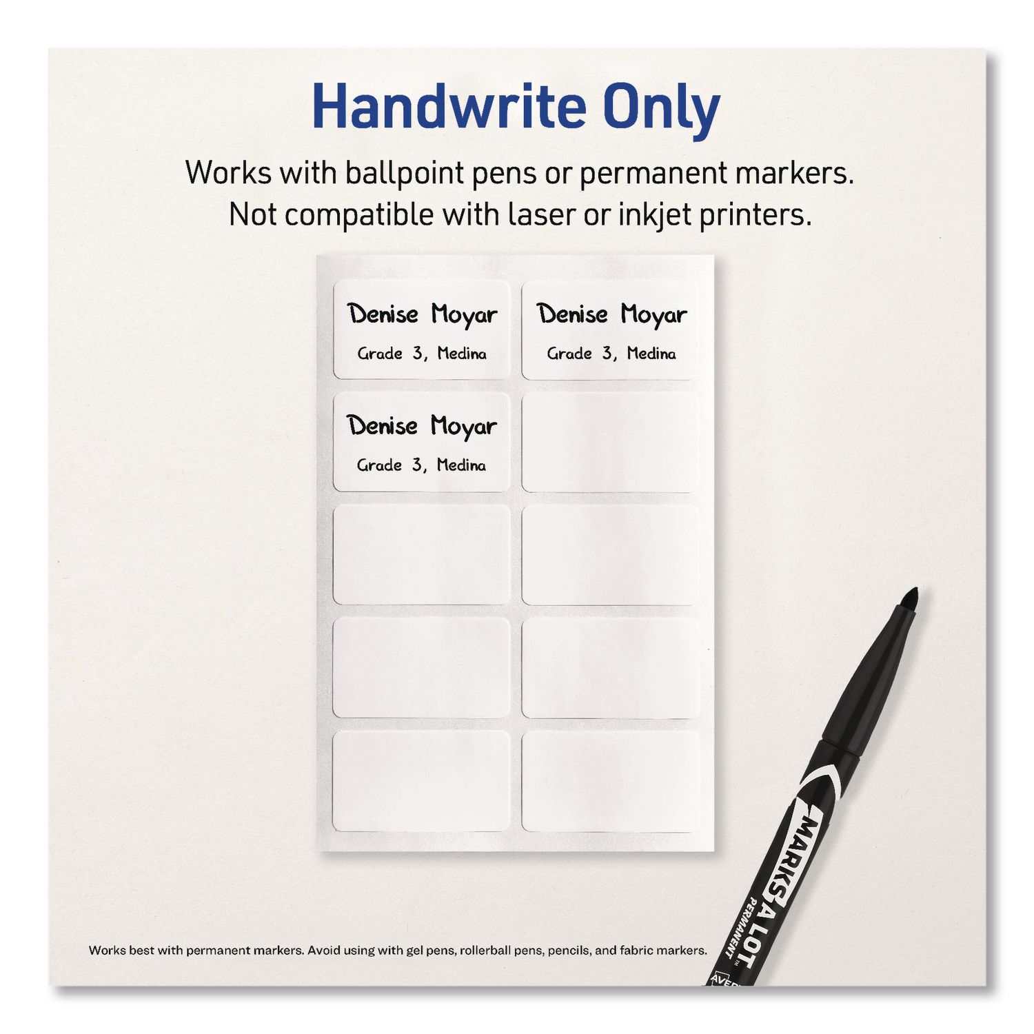 No-Iron Fabric Labels, Handwrite Only, 1 x 1.75, White, 10/Sheet, 10 Sheets/Pack