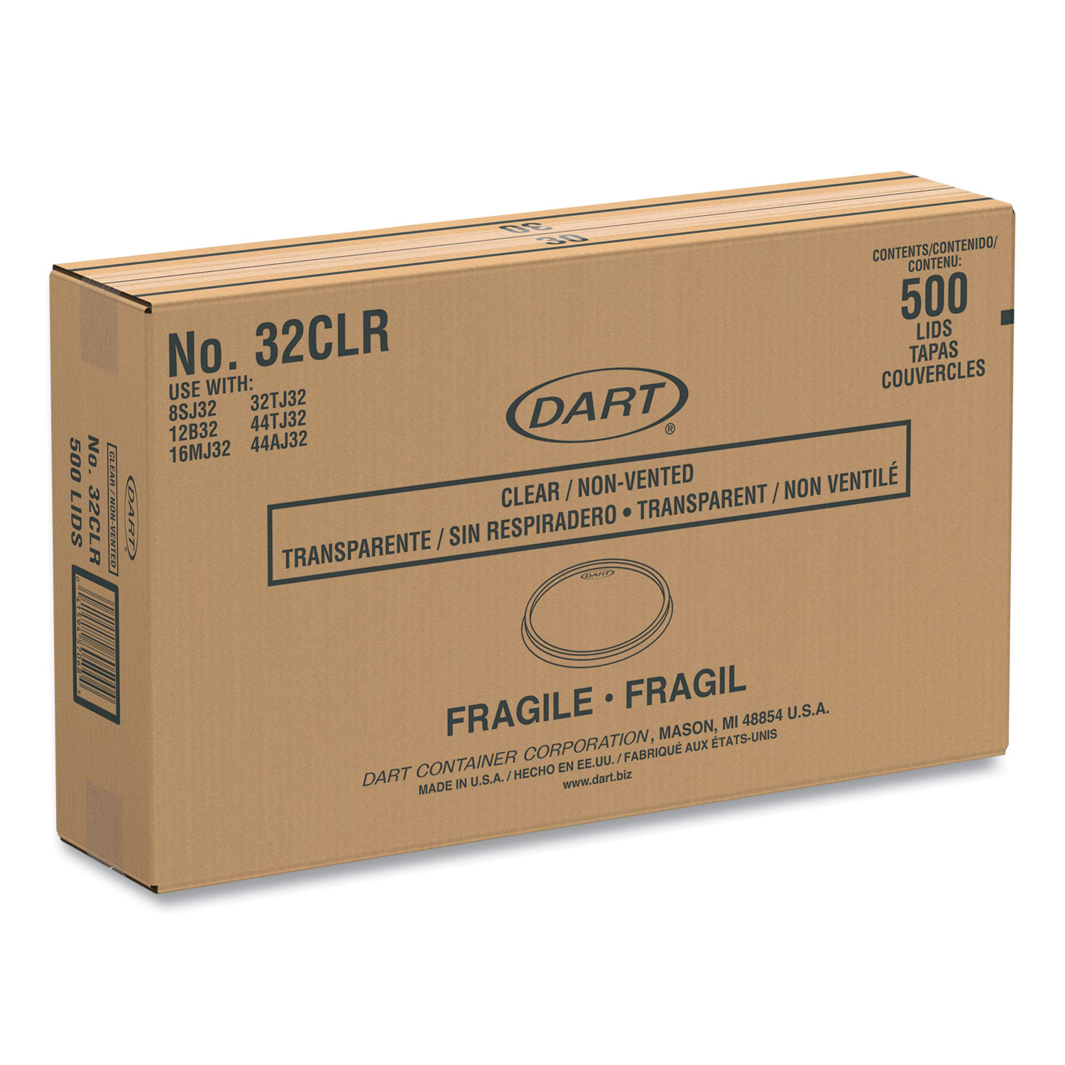 Flat, non-vented lids provide a sturdy seal, helping to maintain beverage temperature. Leak-resistant to allow for convenient transportation without spillage. Usable with a variety of cups and food containers. Fits: 32 oz Hot Cups; 44 oz Hot Cups; Material Type: Plastic; Material(s): Plastic; Color(s): Clear.