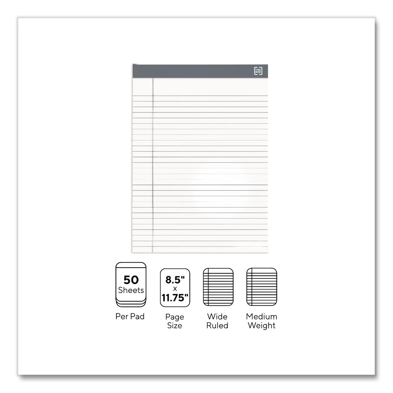 Stock up on TRU REDâ„¢ Notepads. They’re ideal for taking messages, capturing appointment details, jotting down ideas and taking notes; and as they’re top bound, they’re also more convenient for left-handed writers. Sturdy chipboard backing serves as an excellent writing surface, and each sheet is perforated to ensure clean separation. Pocket Sized: No; Pad-Binding Type: Taped; Pad-Binding Edge: Top; Number of Subjects/Sections: 1.