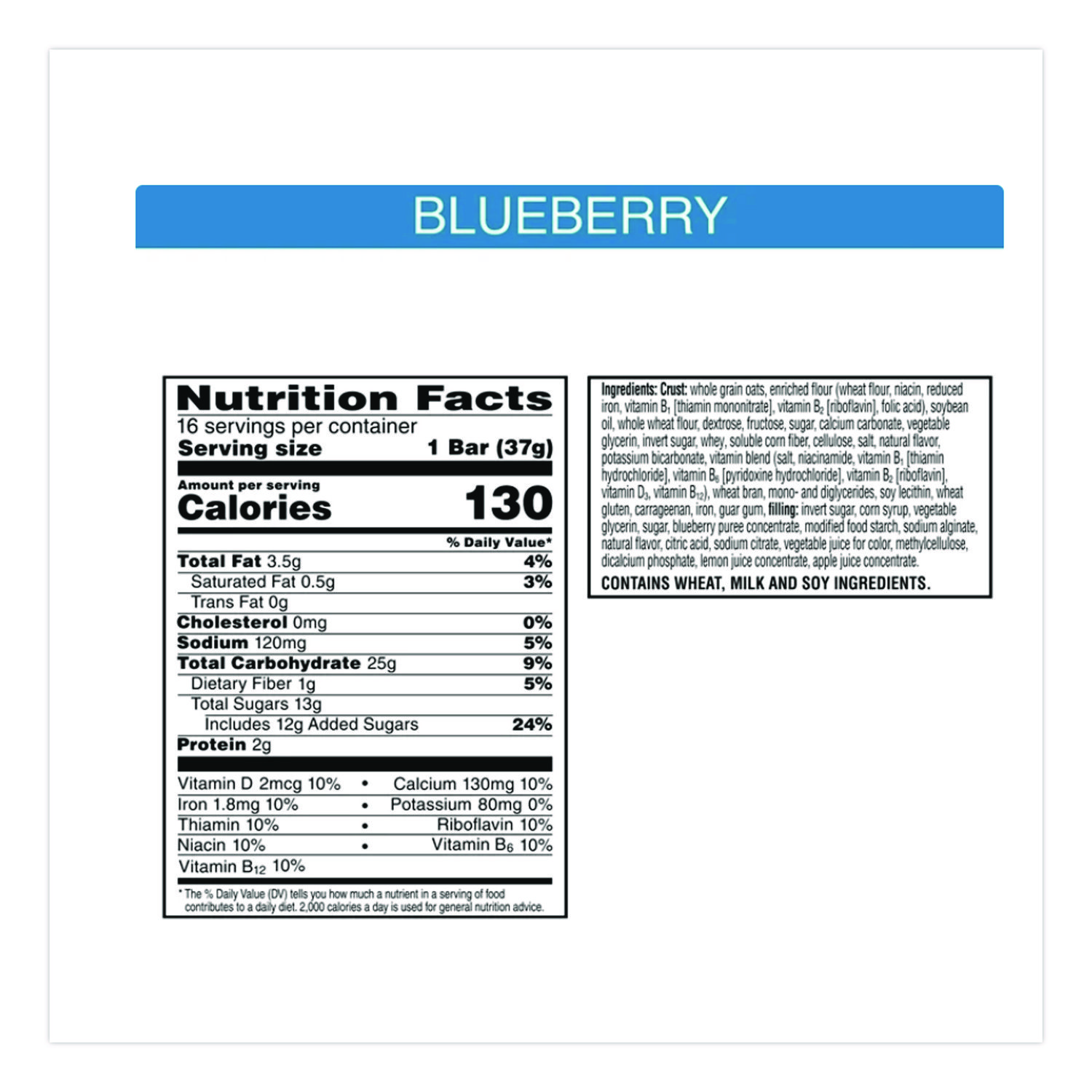 Combine deliciousness with calcium, in yummy calcium-enriched fruit snack bars. Soft and delicious bars and bite-sized minis provide the perfect sweet complement to your day. Convenient, individually wrapped snacks are perfect for pockets and purses-great for those on the go. Food Type: Nutrition & Snack Bars; Flavor: Blueberry; Capacity (Weight): 1.3 oz; Sugar Free: No.