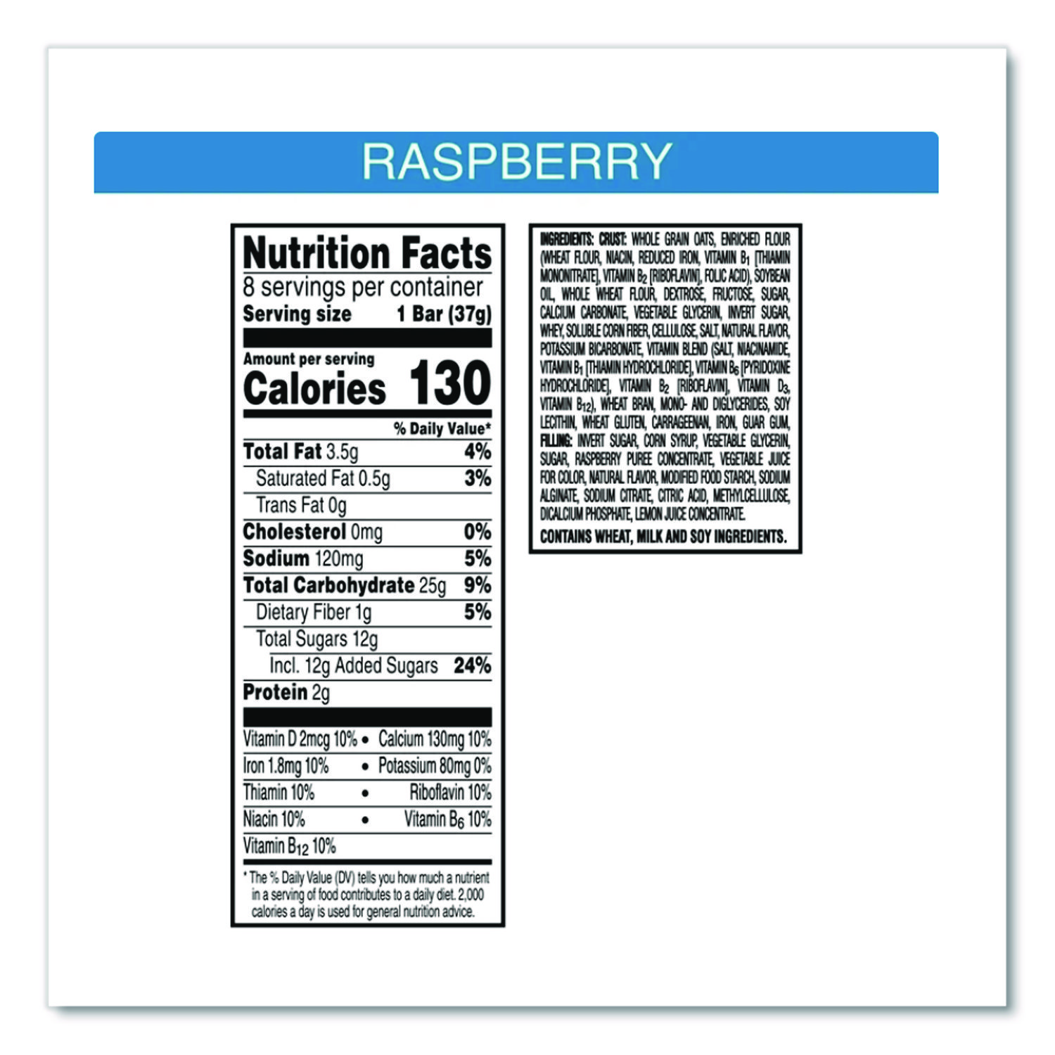 Combine deliciousness with calcium, in yummy calcium-enriched fruit snack bars. Soft and delicious bars and bite-sized minis provide the perfect sweet complement to your day. Convenient, individually wrapped snacks are perfect for pockets and purses-great for those on the go. Food Type: Nutrition & Snack Bars; Flavor: Raspberry; Capacity (Weight): 1.3 oz; Product Packaging: Bar.