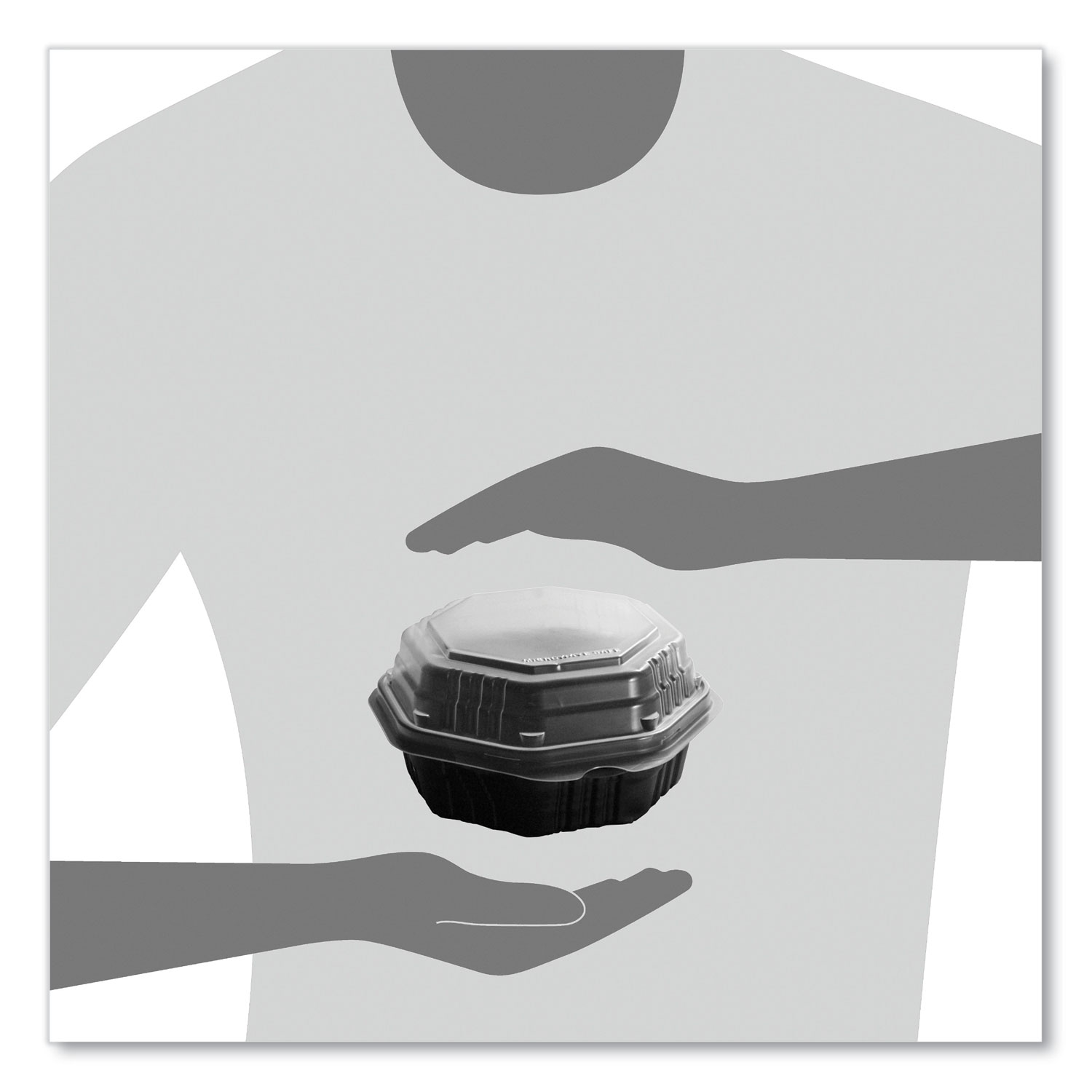 OctaView Hinged-Lid Hot Food Containers, 6.3 x 3.1 x 1.5, Black/Clear, Plastic, 200/Carton