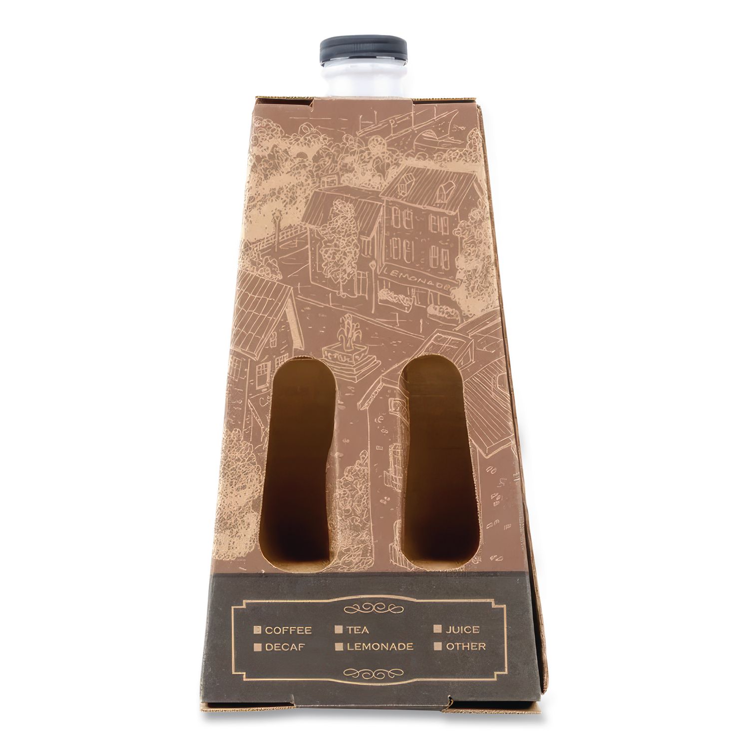 Patented design holds up to 96 oz of hot or cold liquids. Use the handle to transport and pour the carafe with ease. The carafe is also equipped with a fill gauge, so you know exactly when to refill to keep your guests happy. Ships preassembled. Pre-Printed Design. Material(s): Corrugated Paperboard; Color(s): Multicolor; Interior Volume Capacity: 96 oz; Warmer: No.