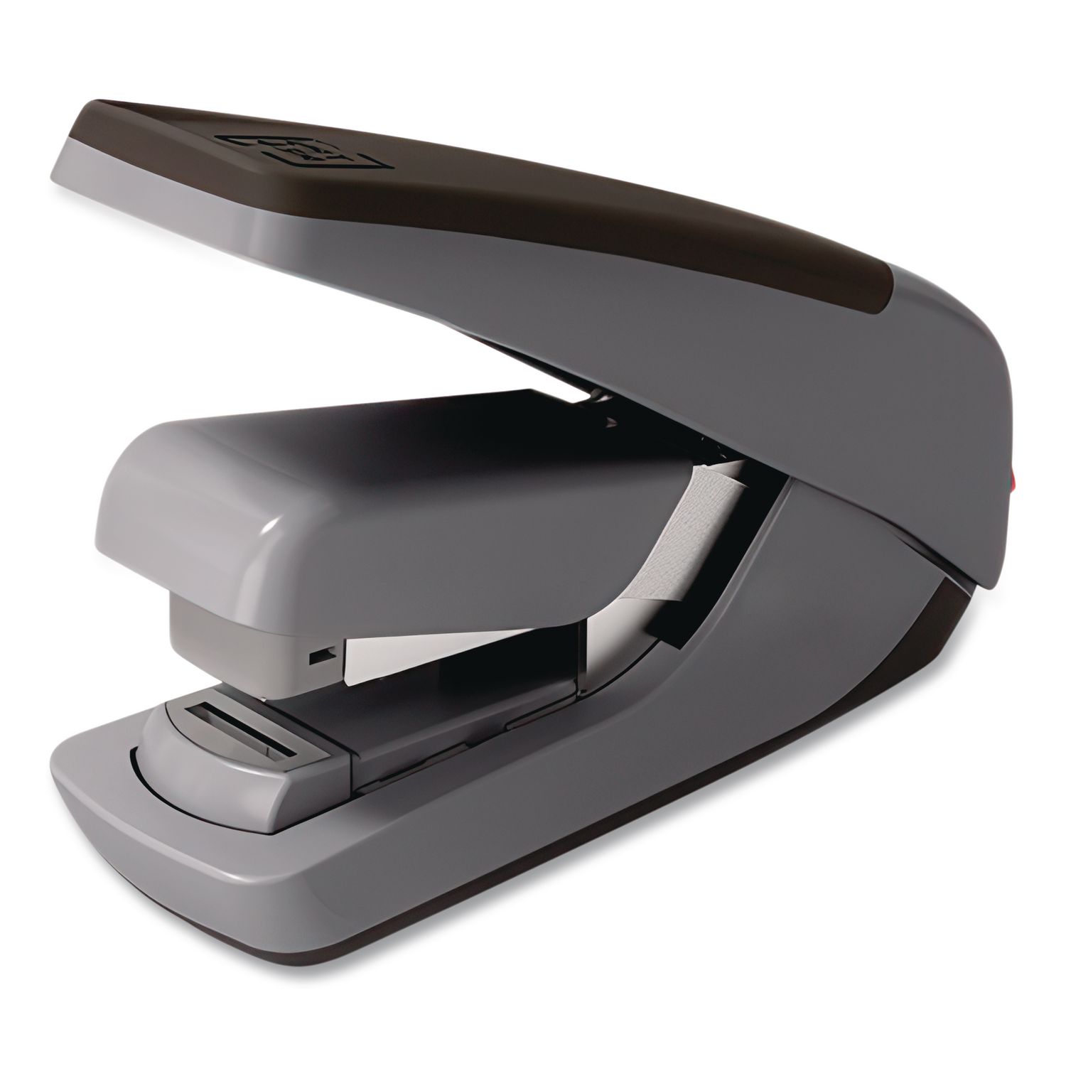 Keep multipage reports securely fastened with this 20-sheet capacity half-strip desktop stapler. Front-loading staple tray is easy to refill to maintain productivity levels. Reduced-effort design offers easy operation. Clinches flat so documents can be neatly stacked. Rubber finish provides a comfortable grip and keeps the stapler securely in place during use. High Capacity Stapling: No; Flat Clinch Plate: Yes; Staple Capacity: Half Strip (105 Staples); Sheet Capacity: 20.