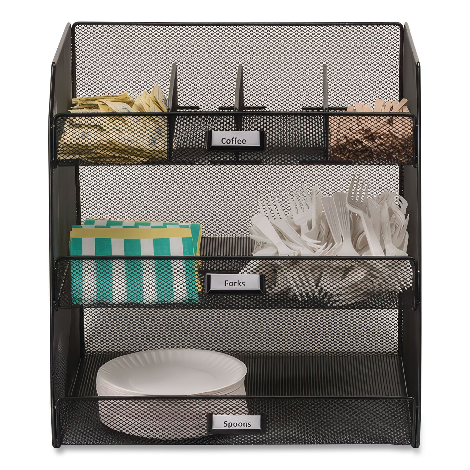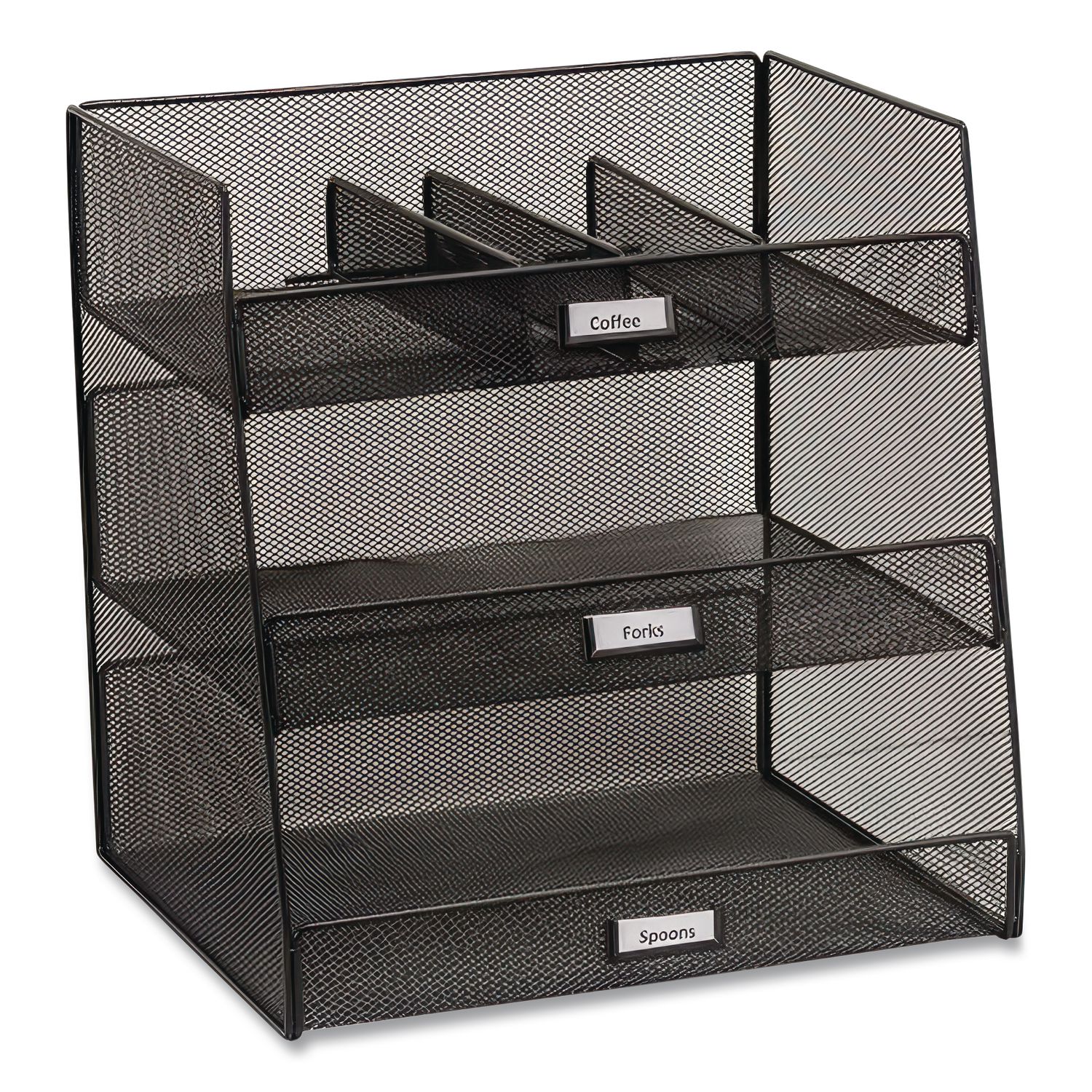 Onyx Breakroom Organizers, 3 Compartments,14.63 x 11.75 x 15, Steel Mesh, Black