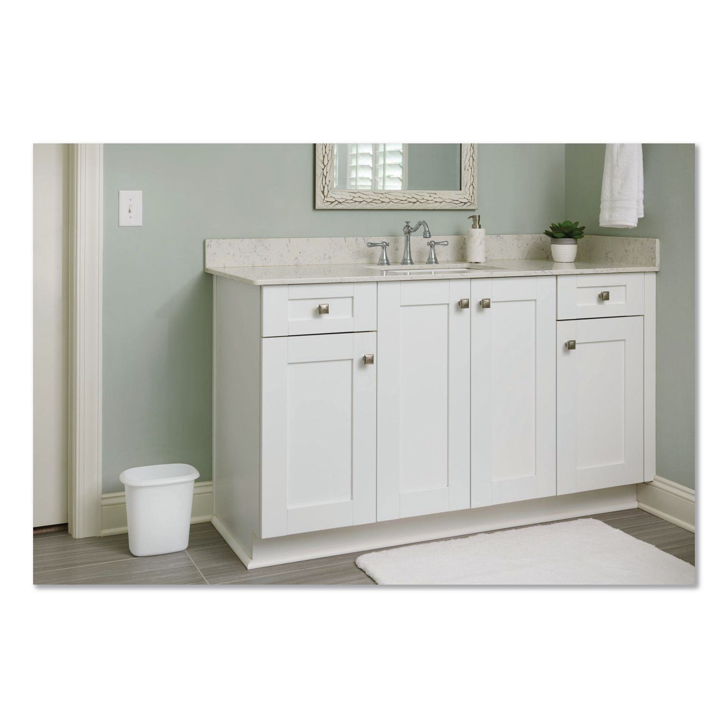 Lightweight and durable, this open-top wastebasket is built to last. Rounded edges with reinforced rim and sides. Smooth-finish plastic is easy to clean. Oval Vanity Wastebasket. Waste Receptacle Type: Powder Room Wastebasket; Material(s): Plastic; Application: Indoor All-Purpose Waste Disposal; Interior Volume Capacity: 6 qt.