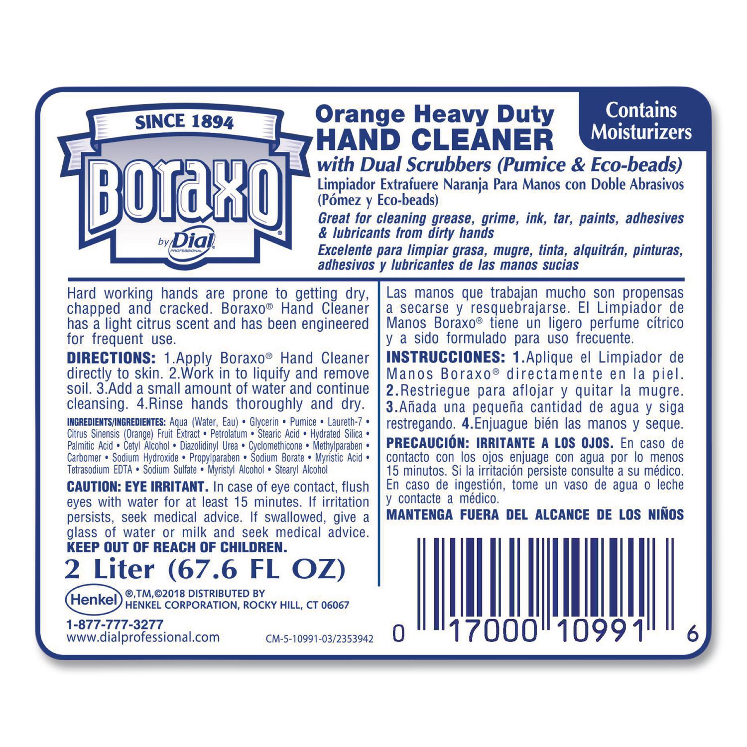 Two-in-one formula cleans and conditions the hardest-working hands. Contains dual-scrubbers and orange oil for deep cleaning. Removes tough grease, grime, ink, tar, paints and more from dirty hands. Soap Type: Liquid; Volume Capacity: 2 L; Scent: Citrus; Personal Soaps Application: Hand.