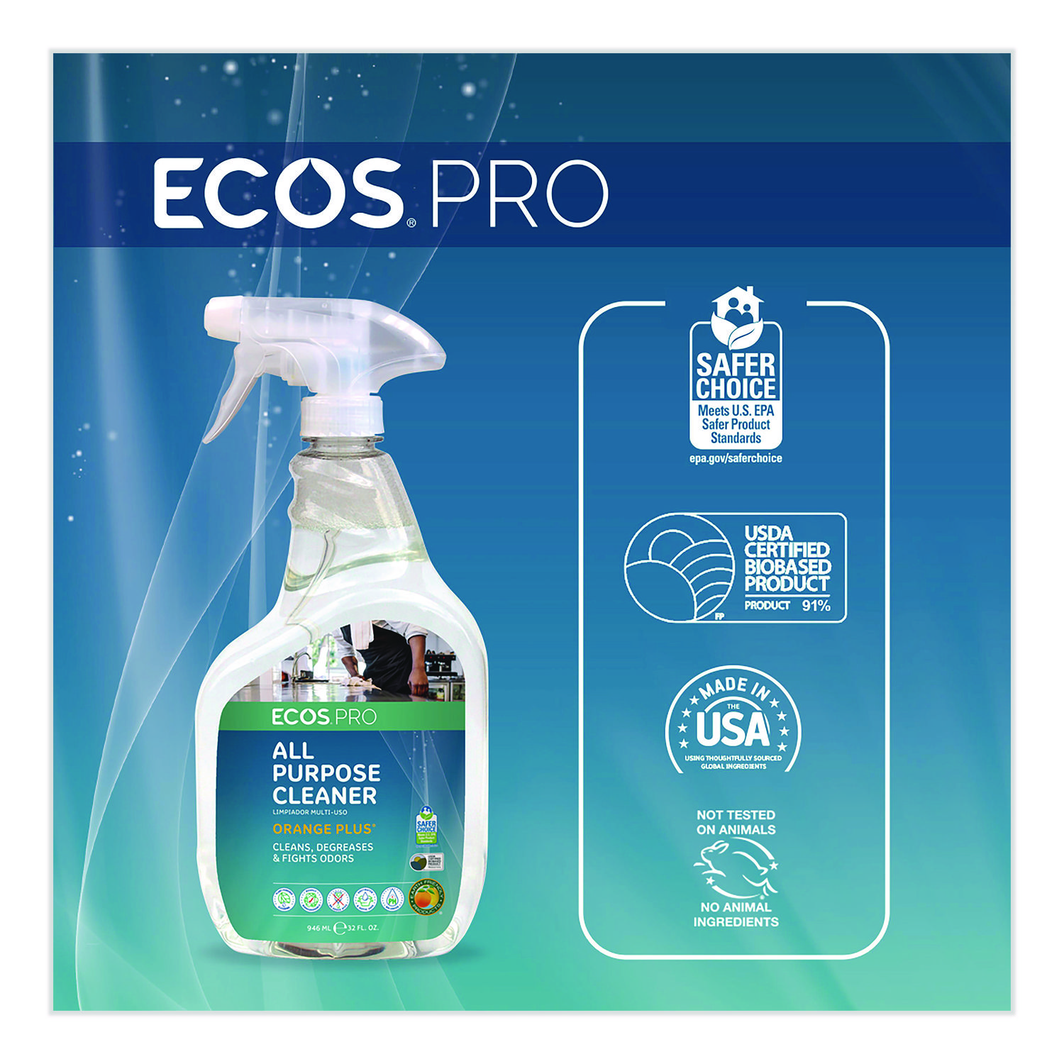 | Compliance Standards: | EPA Safer Choice Label; Kosher; Meets or Exceeds EPA Standards; Meets or Exceeds USDA Standards; USDA Certified Biobased 91% |